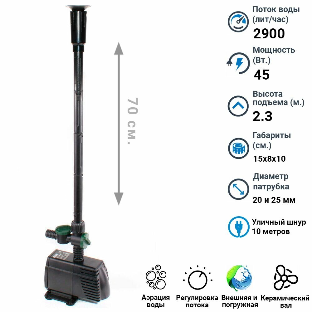 Помпа фонтан для пруда Hailea HX 8830F (2900 лит/час. Высота подъема 2.3 м. Мощн. 45 Вт.) интересное: