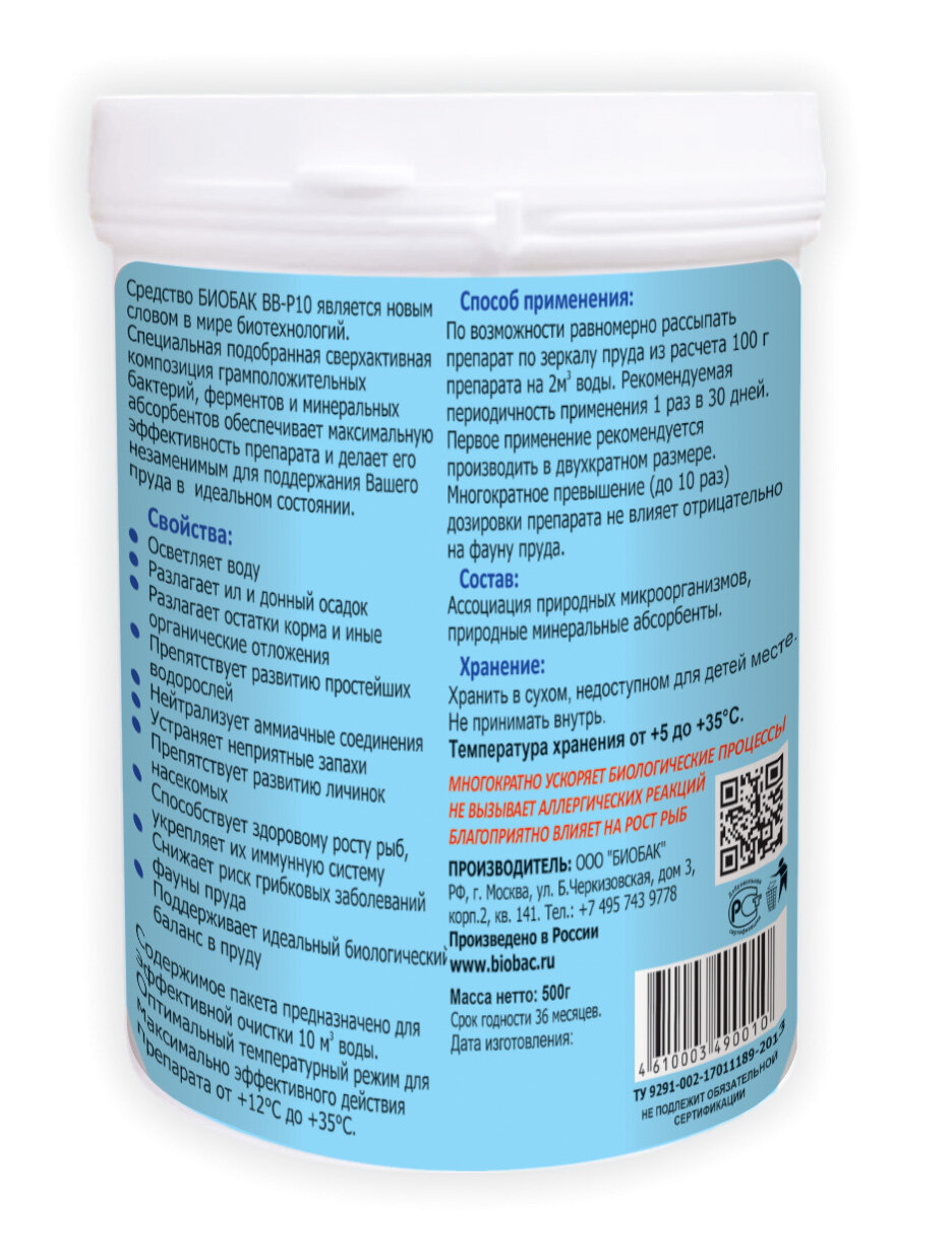 Ниже Вы можете прочитать отзывы на Биологическое средство для очистки прудов и водоемов Биобак, ознакомится с подробными характеристиками, посмотреть интересные обзоры и фотографии на Биологическое средство для очистки прудов и водоемов Биобак.