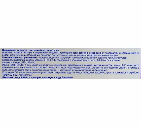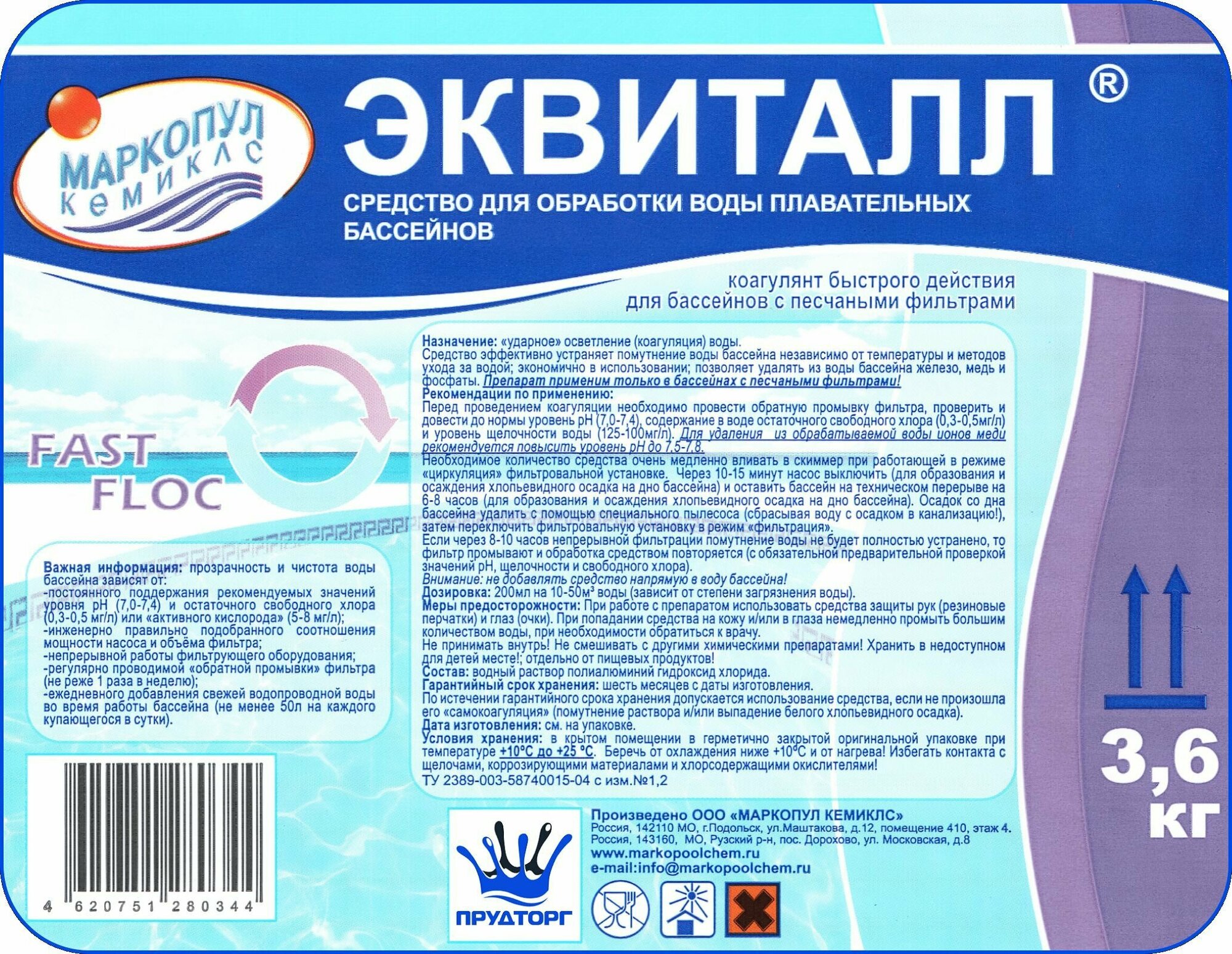 Эквиталл (3л) коагулянт для бассейна - жидкий быстрого действия. Маркопул Кемиклс.