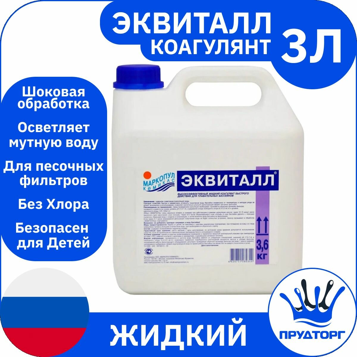 Химия для бассейна - Коагулянт/Флокулянт: "Эквиталл" (3 литра) Жидкость для осветления и очистки воды / Средство для ухода за водой "Маркопул Кемиклс