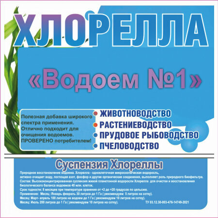Хлорелла для водоемов(пруда, озера) "Водоем № 1" интересное: