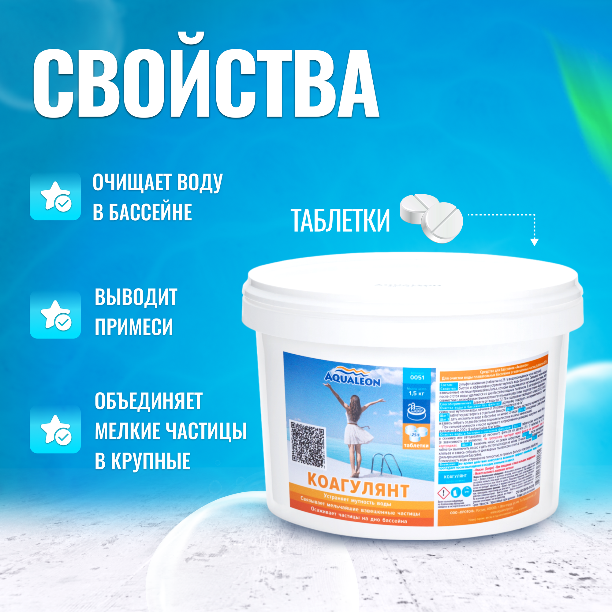 Коагулянт таблетированный Aqualeon, средство против мутности воды, 4 кг
