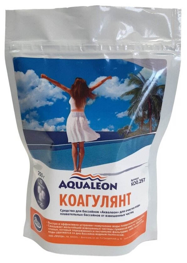 Коагулянт для бассейна Aqualeon в картриджах таблетки по 25 гр, zip-пакет 250 гр