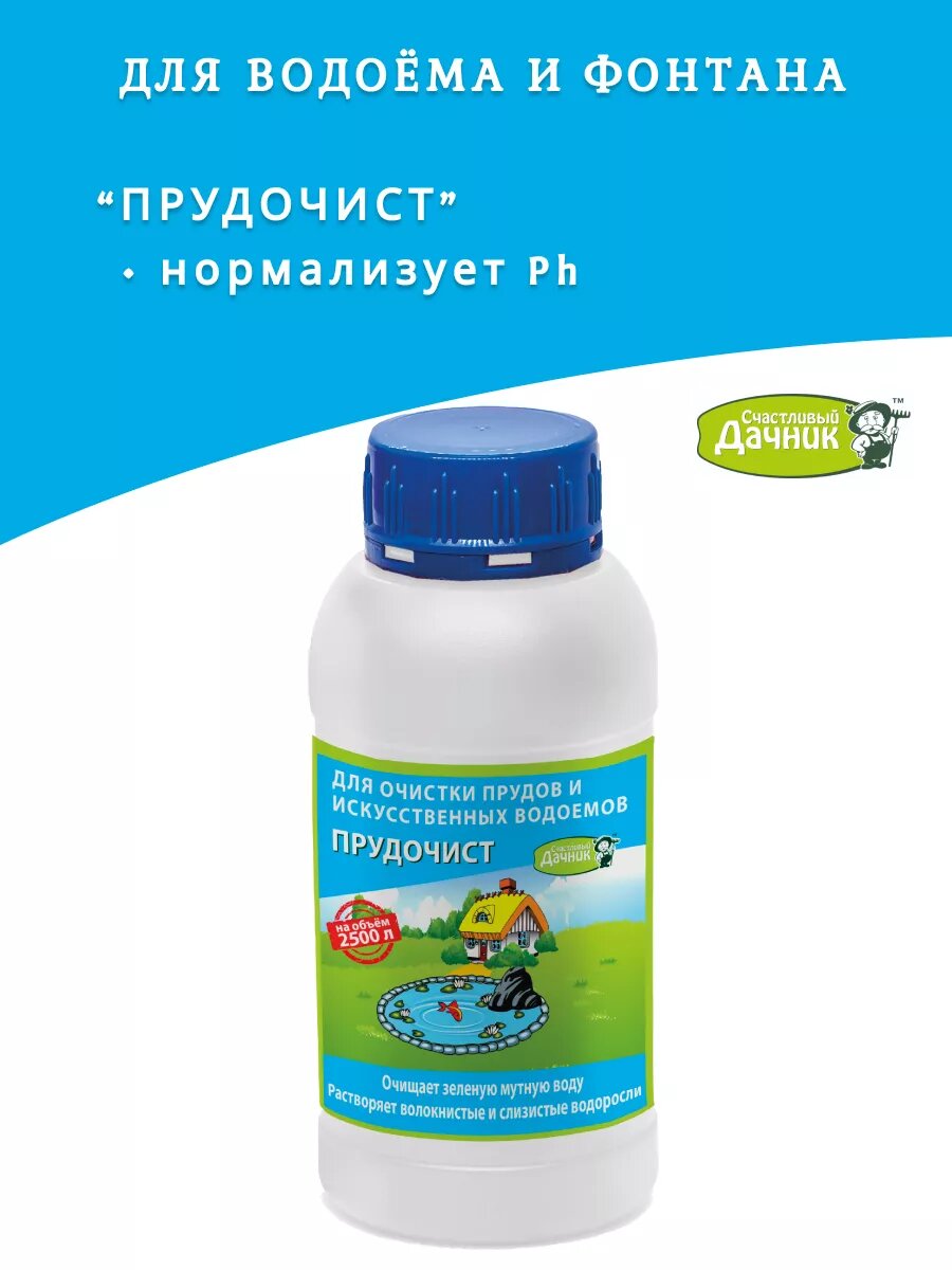 Счастливый дачник Биоактиватор для очистки декоративных прудов, водоёмов и фонтанов "Прудочист" 250 мл ПЧЖ-250