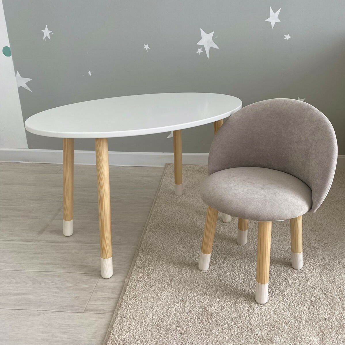 Купить Детский стол "Овал" белый + Мягкий стульчик Серый