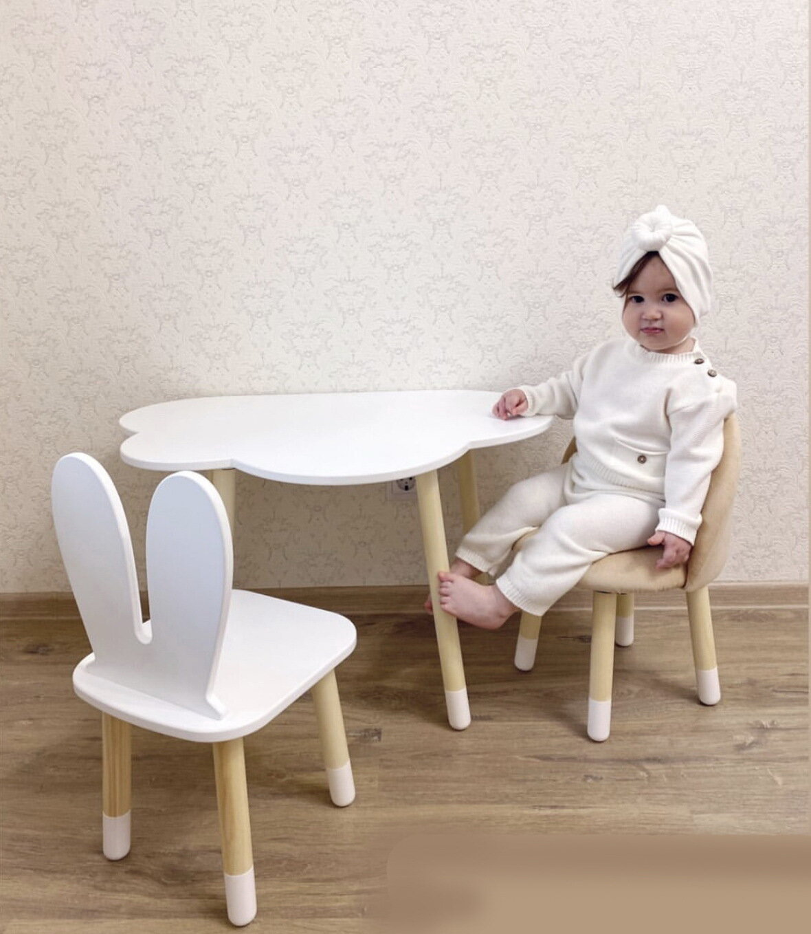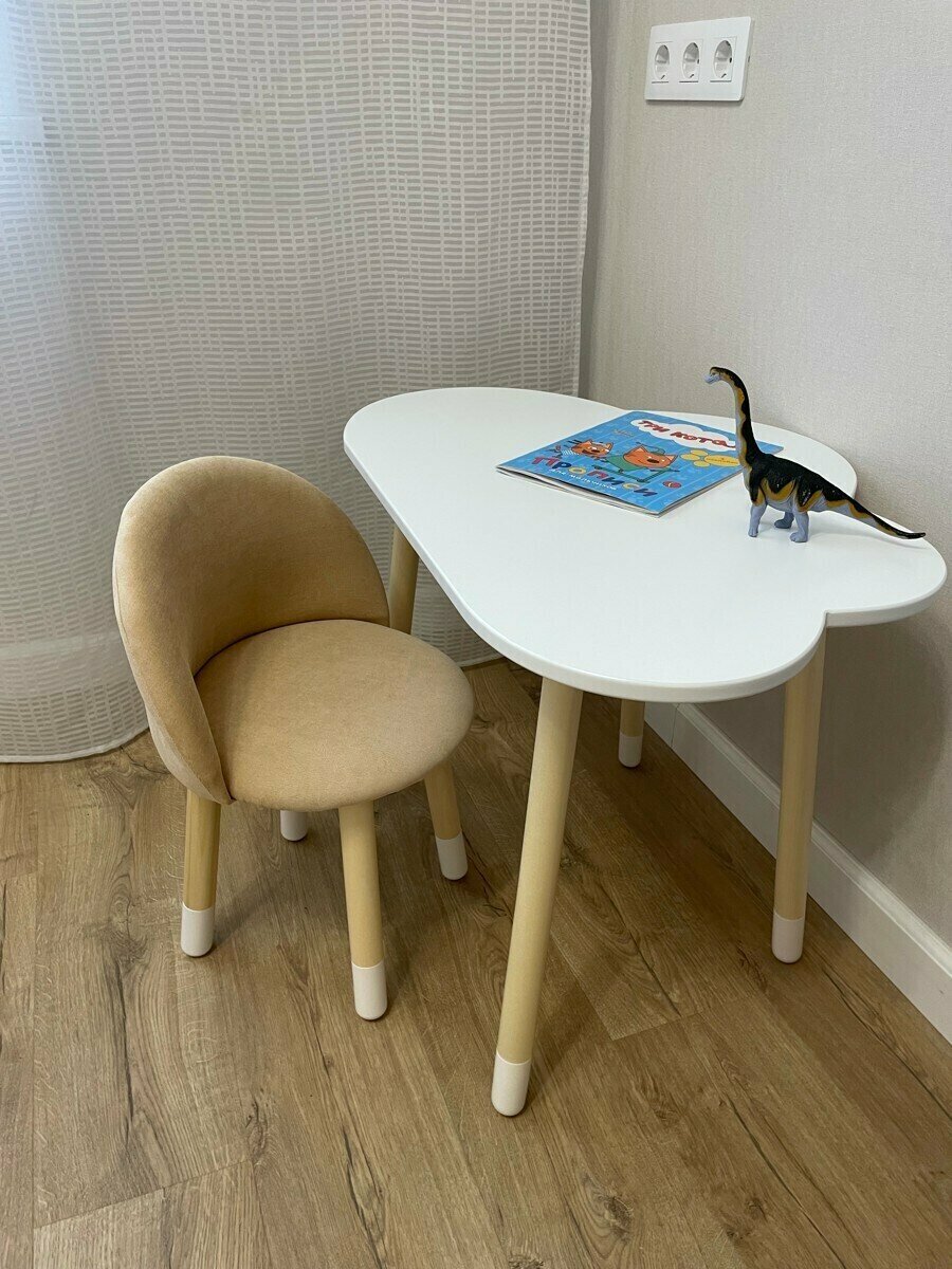 Детский стол"Овал" белый + Мягкий стульчик Бежевый интересное: