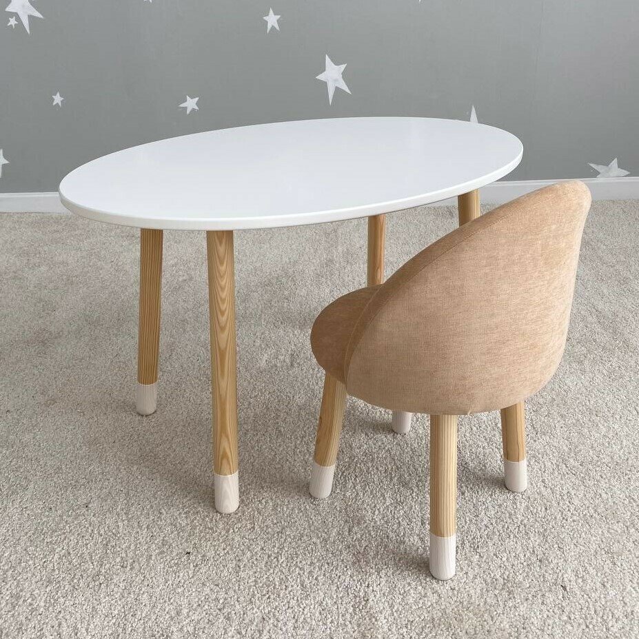 Купить Детский стол"Овал" белый + Мягкий стульчик Бежевый