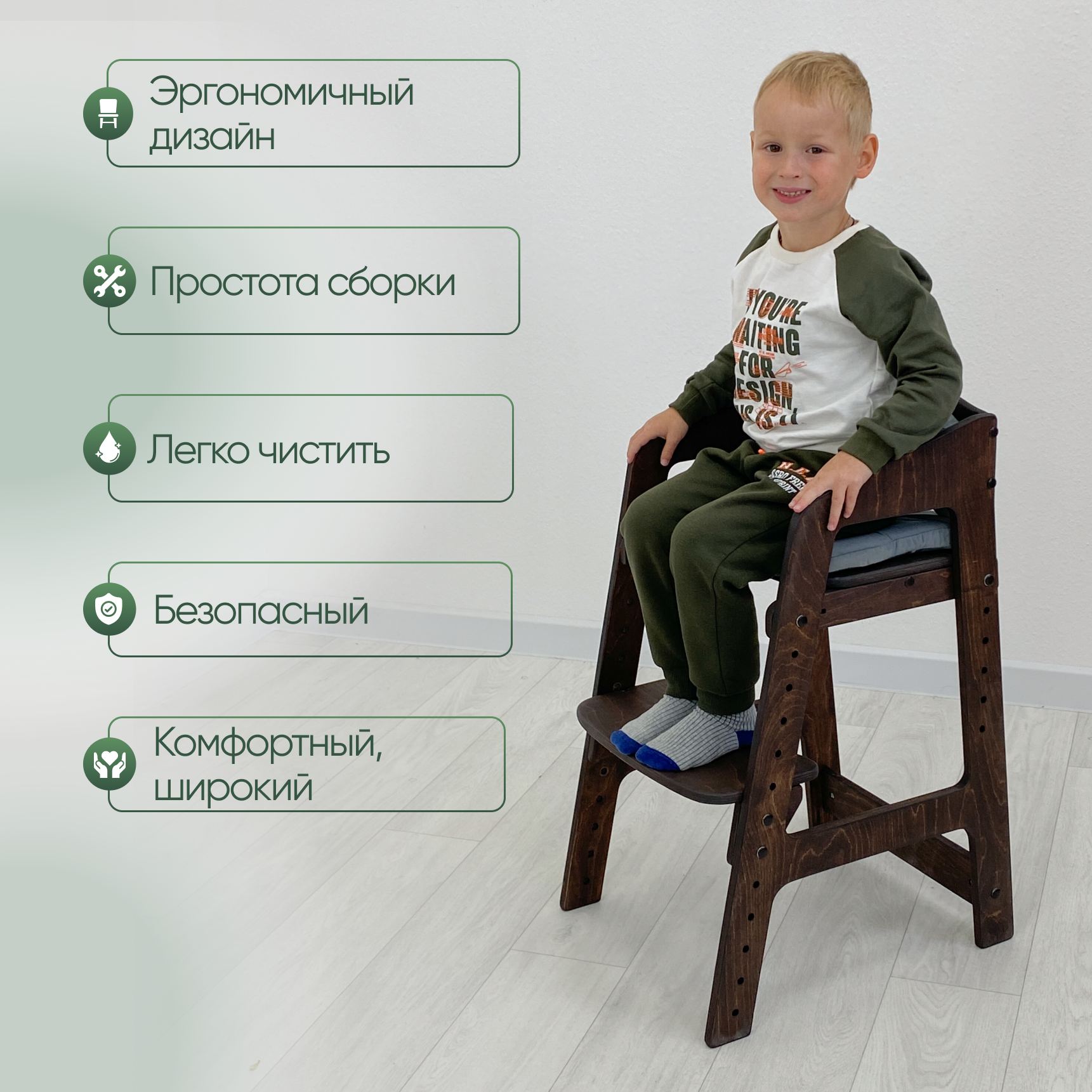 Купить Растущий стульчик для детей Непоседа. Темный орех. Темно-серые подушки.