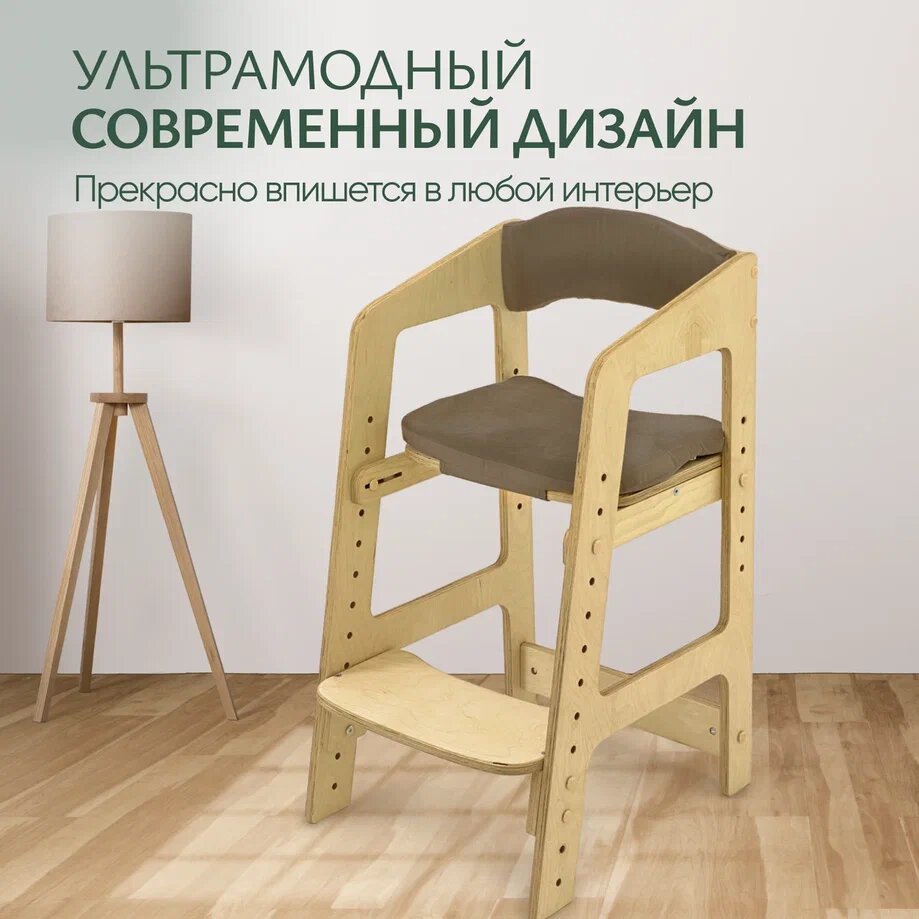 Растущий стульчик для детей Непоседа. Золотой дуб. Серо-бежевые подушки.
