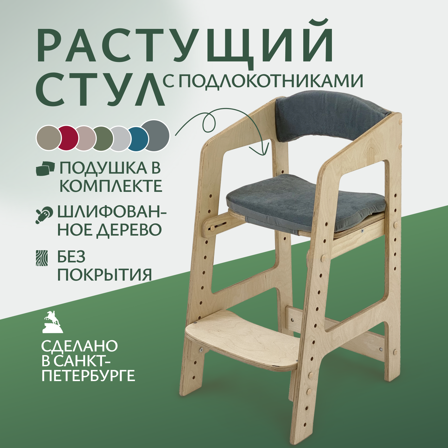 Купить Растущий стульчик для детей Непоседа. Без покрытия. Темно-серые подушки.