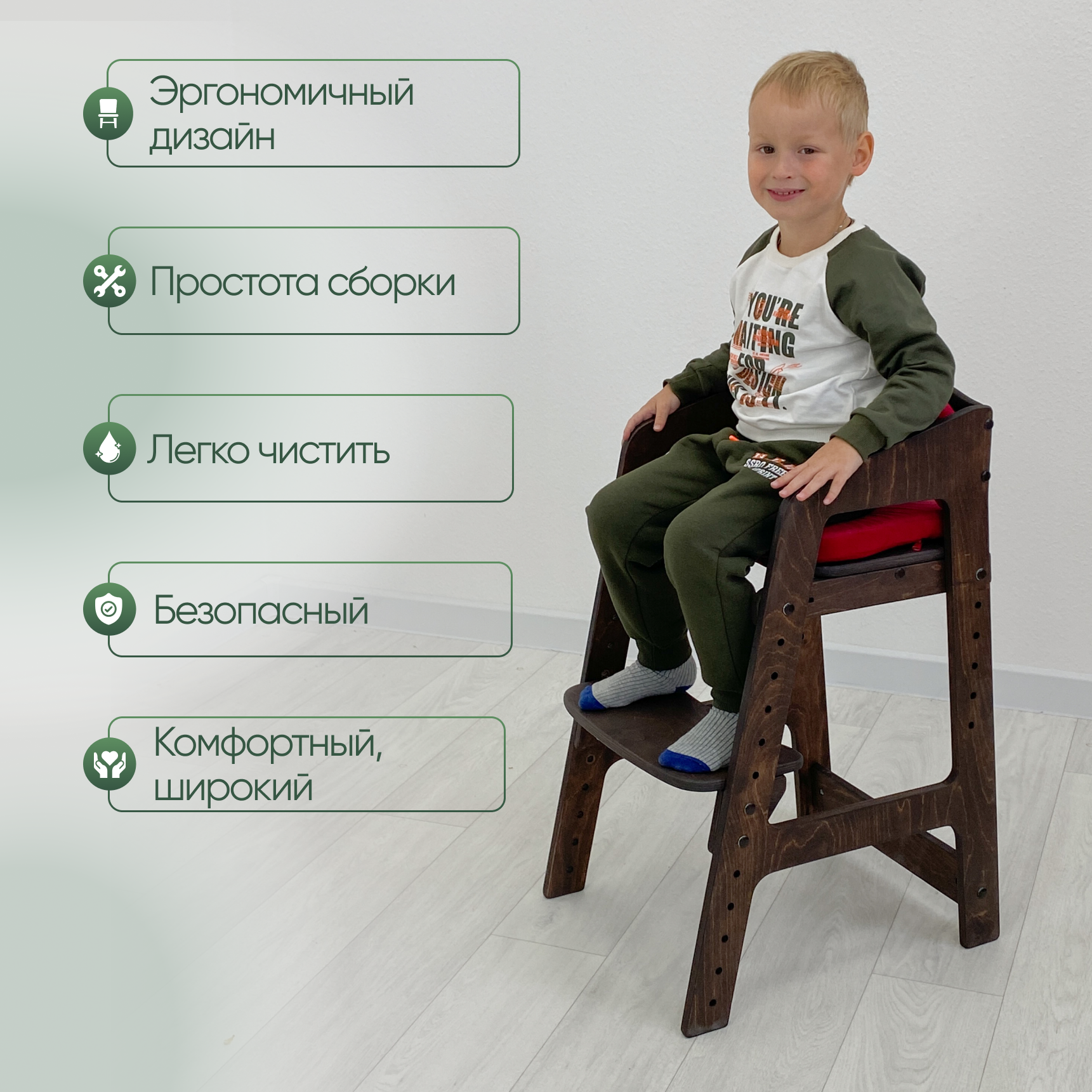 Купить Растущий стульчик для детей Непоседа. Темный орех. Красные подушки.