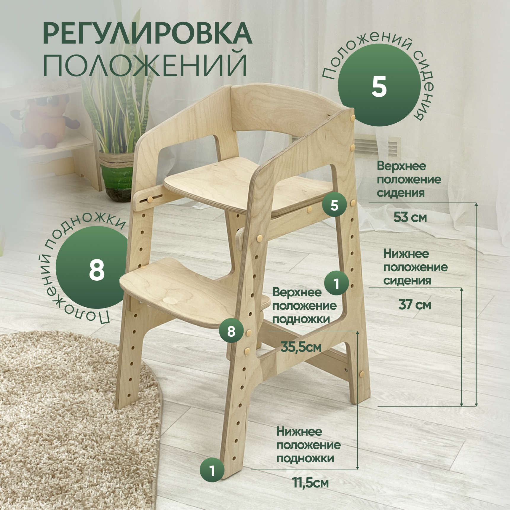 Растущий стул для детей Непоседа. Без покрытия.