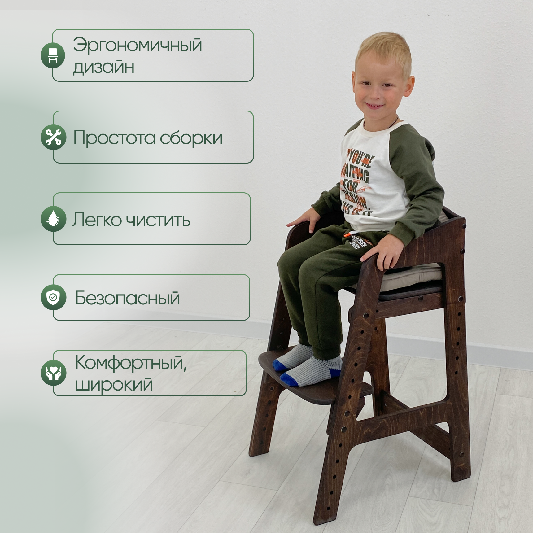 Купить Растущий стульчик для детей Непоседа. Темный орех. Серо-бежевые подушки.