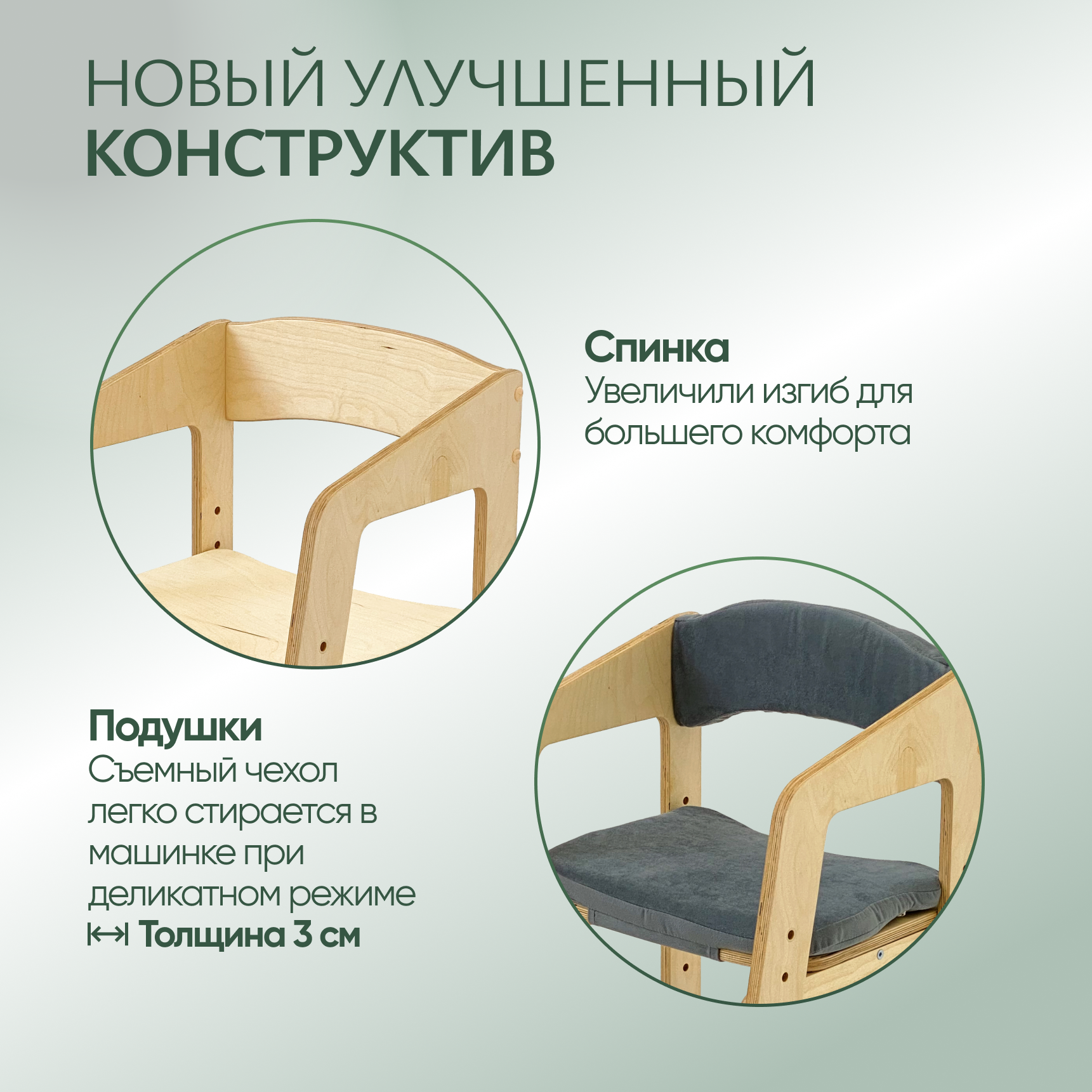 Растущий стульчик для детей Непоседа. Без покрытия. Темно-серые подушки.