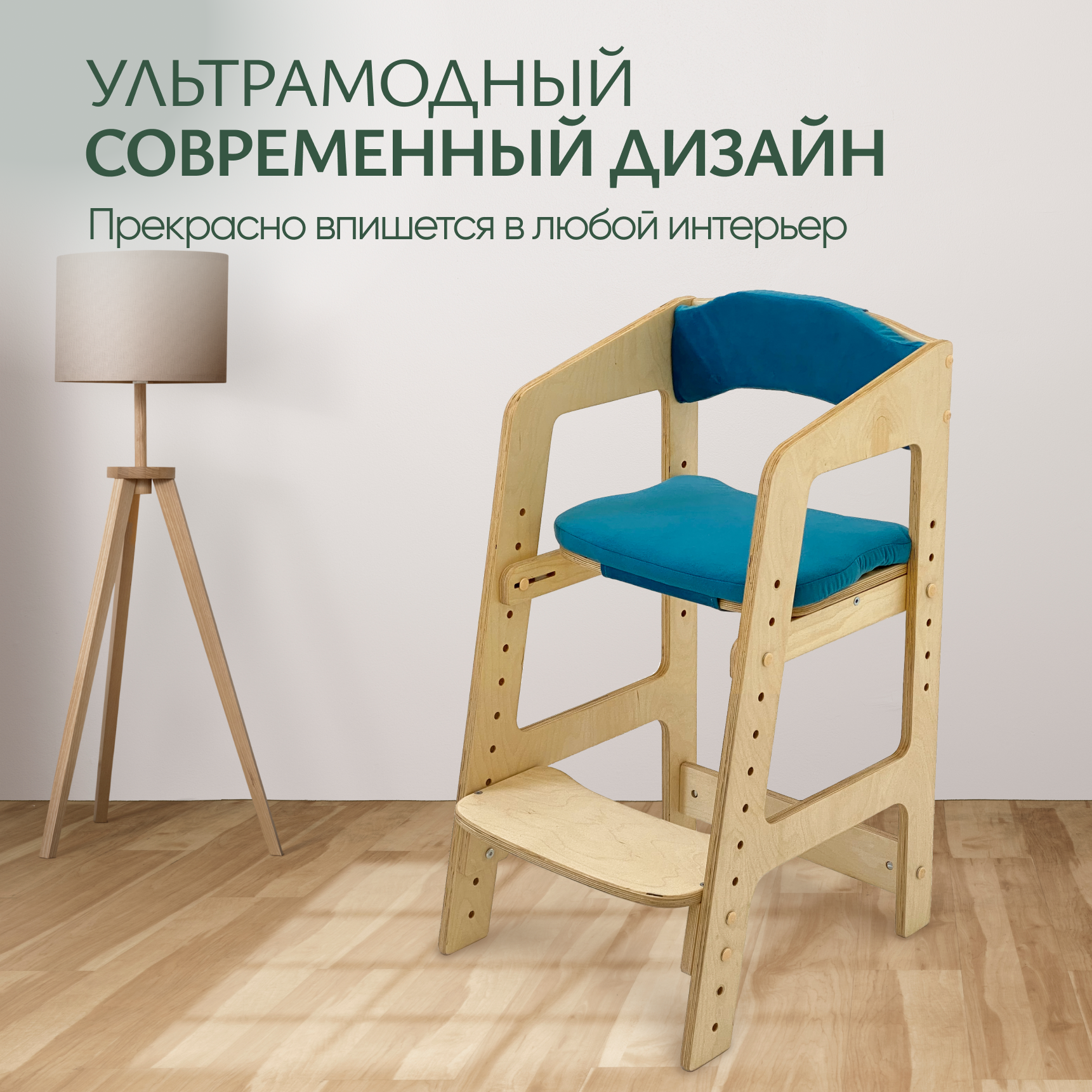 СохранитьРастущий стульчик для детей Непоседа. Прозрачное масло. Синие подушки. интересное: