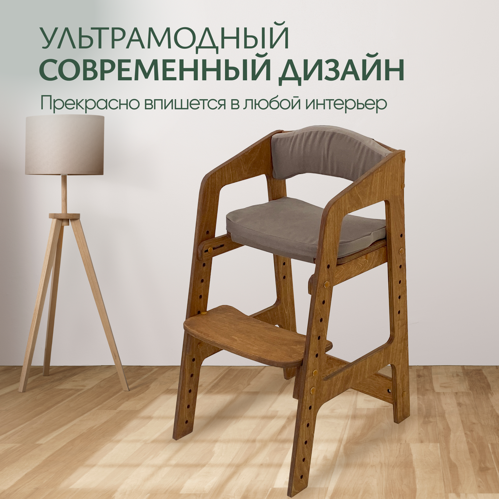 Купить Растущий стульчик для детей Непоседа. Золотой дуб. Серо-бежевые подушки.