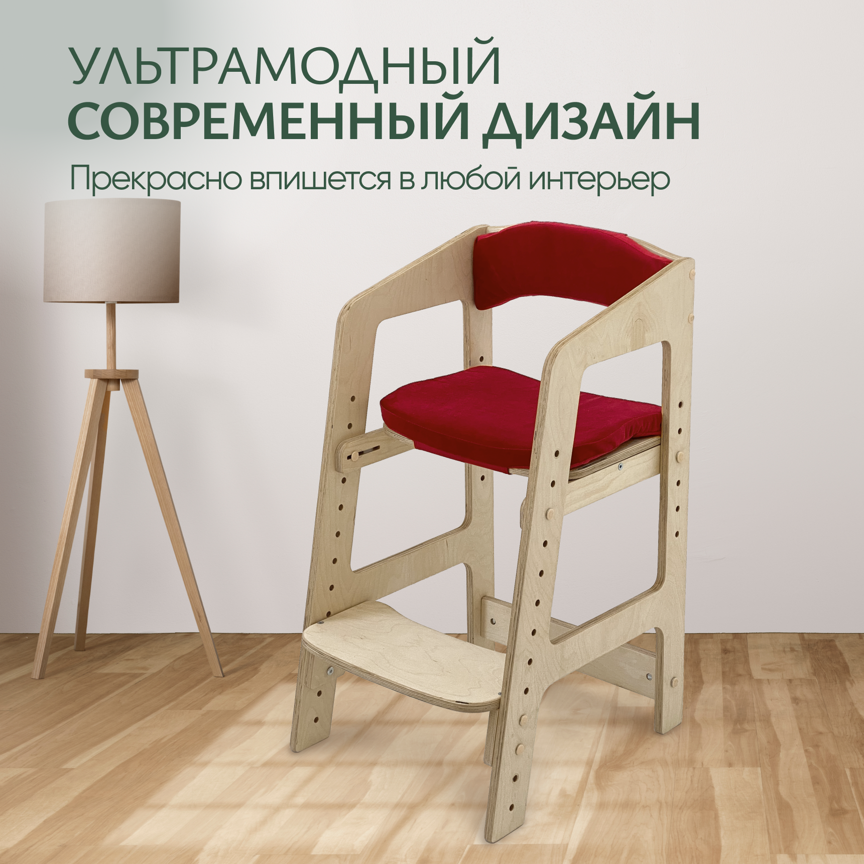 Купить Растущий стульчик для детей Непоседа. Без покрытия. Красные подушки.