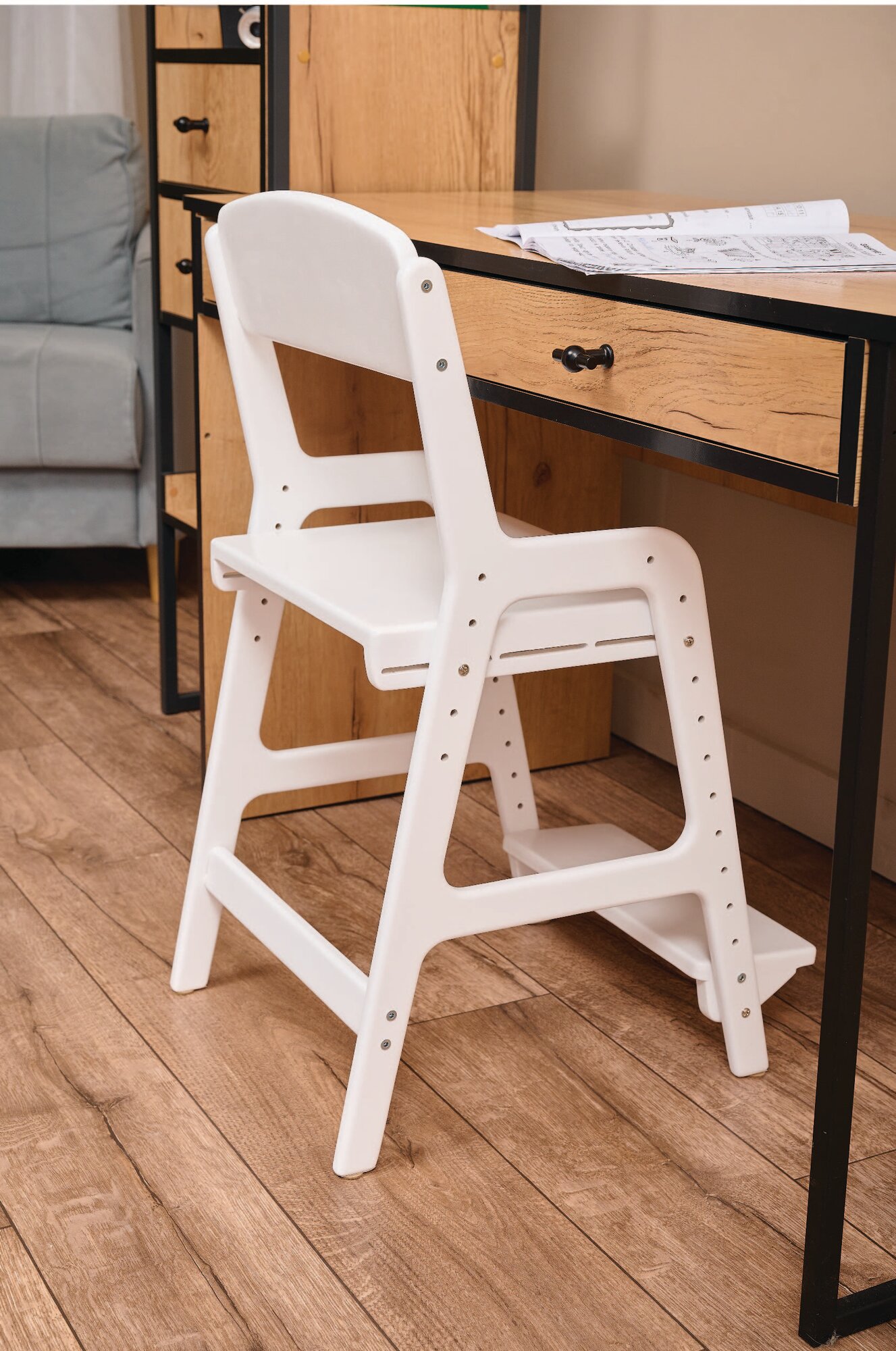 Растущий стул для детей FORLIKE белый, с подлокотниками, деревянный регулируемый стул
