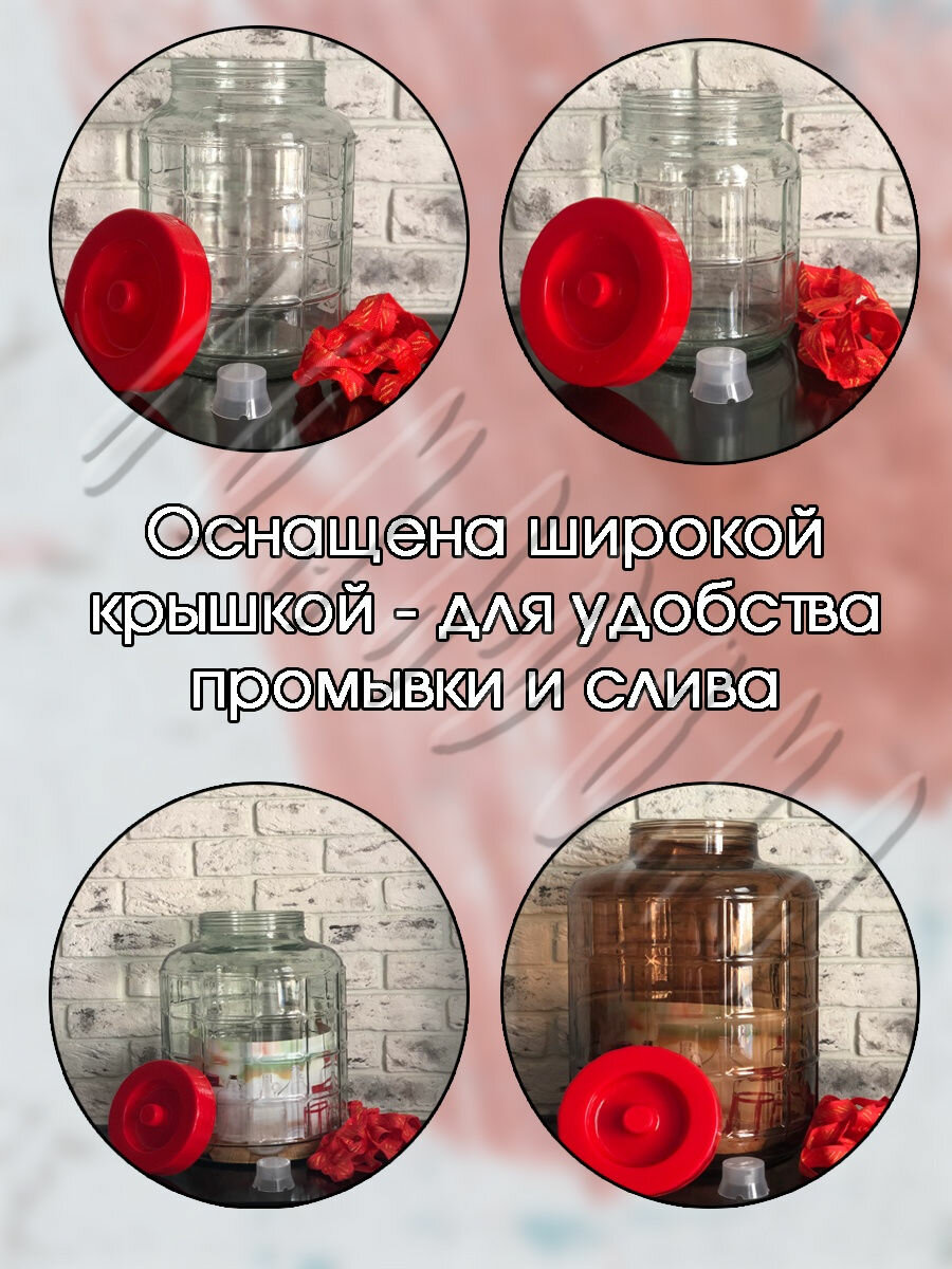 Купить Банка с гидрозатвором стеклянная 5 литров / для самогона, для вина, для брожения, бочонок