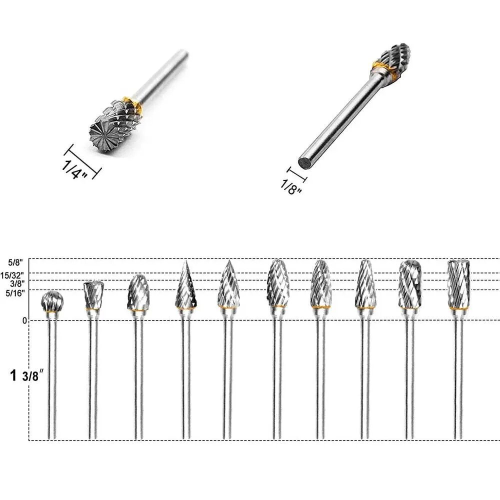 Купить Борфрезы твердосплавные по металлу 10 штук для гравера 6 мм, Хвостовик 3 мм