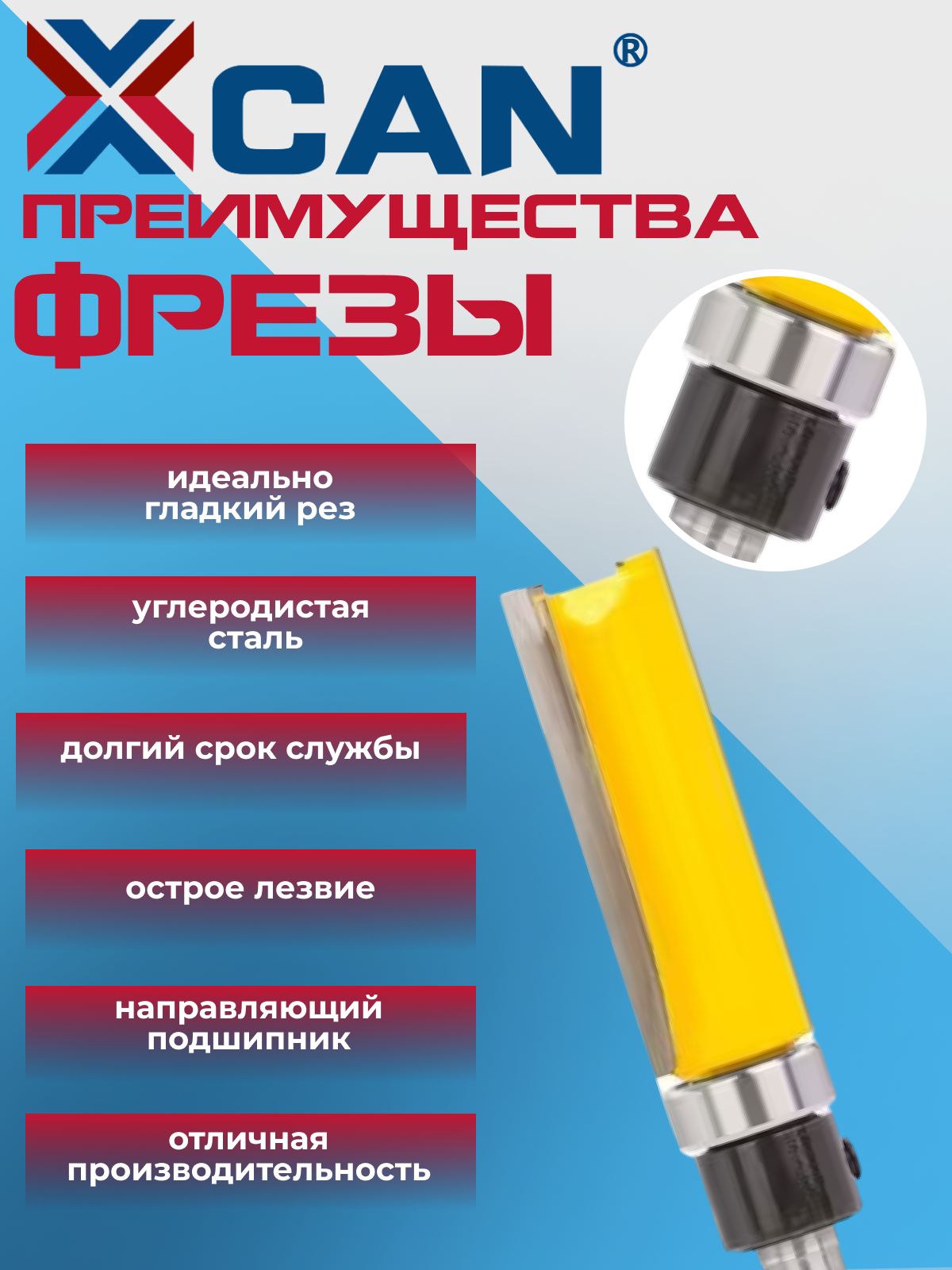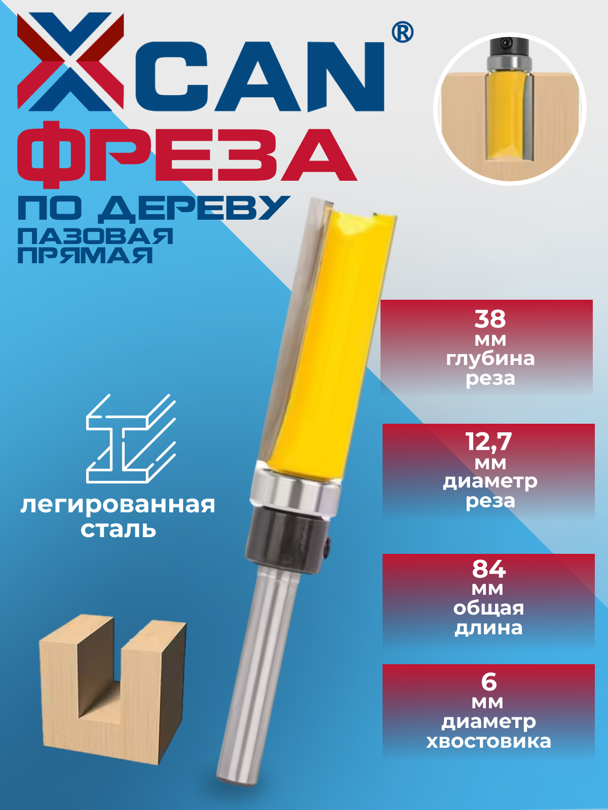 Фреза по дереву пазовая прямая XCAN с верхним подшипником 6х12,7х38х84 мм интересное:
