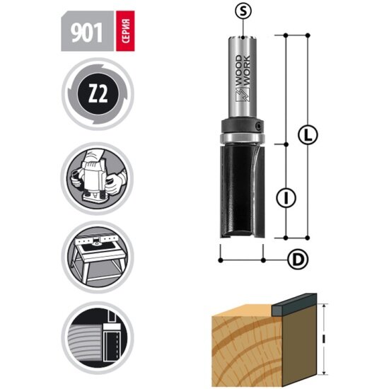 Фреза прямая с подшипником D-19mm I-26mm S-12mm WOODWORK 901.1926.12