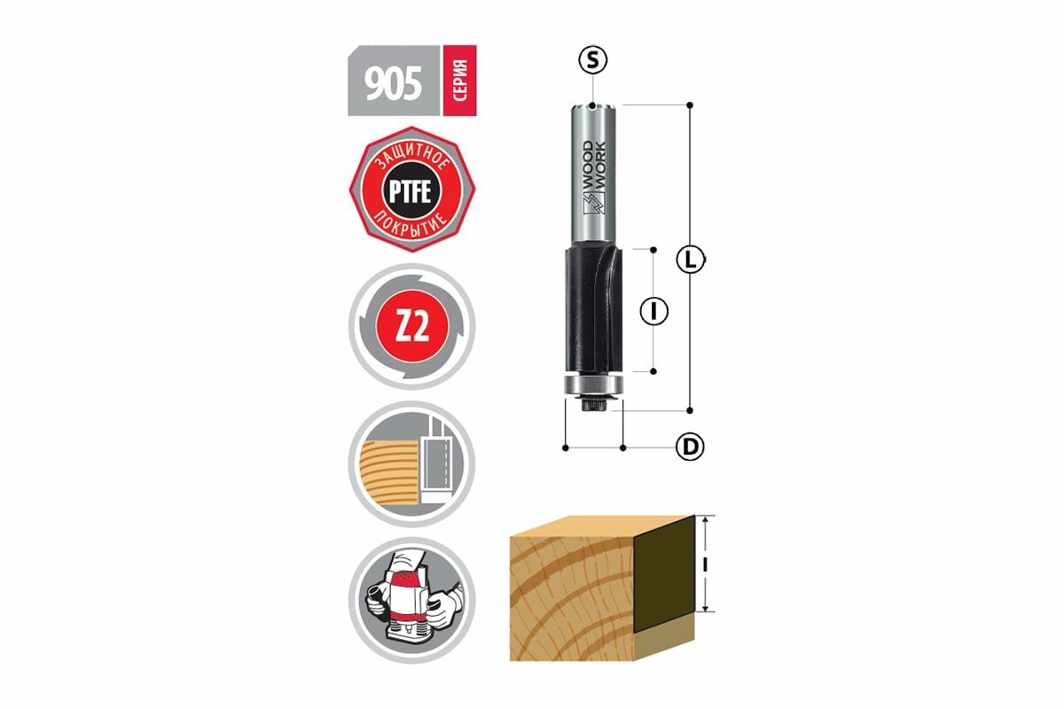Фреза прямая с подшипником D-19mm I-26mm S-12mm WOODWORK 901.1926.12