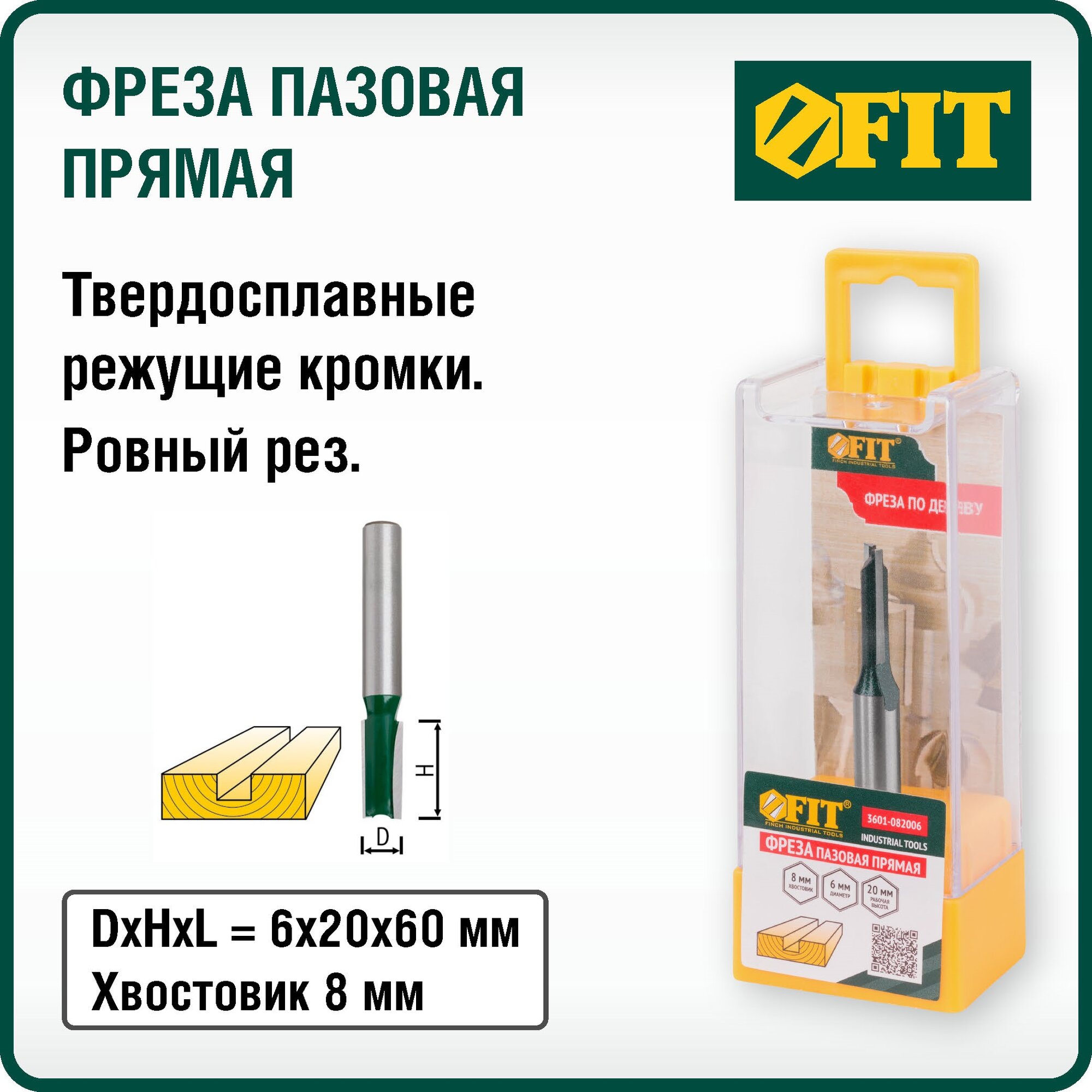 Купить Фреза FIT 3601-082006 пазовая прямая с двойным лезвием DxHxL=6х20х60мм