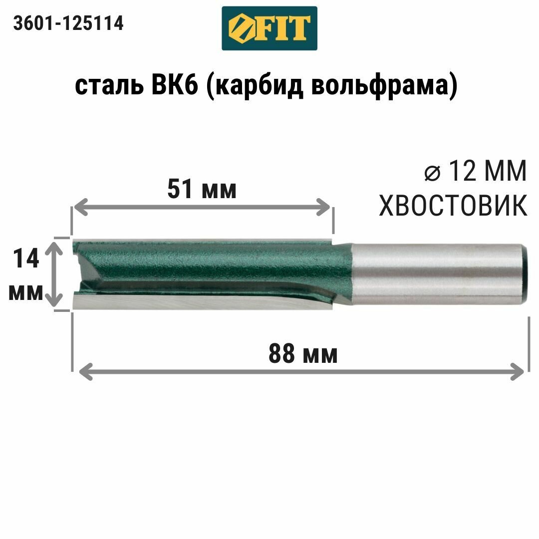 FIT Фреза по дереву пазовая прямая с двойным лезвием хвостовик 12 мм DxHxL 12х51x91 мм арт. 3601-125112