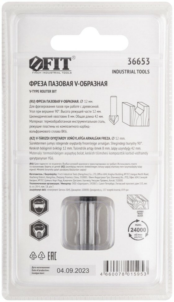Фреза FIT пазовая V-образная 12х12х42мм (36653)