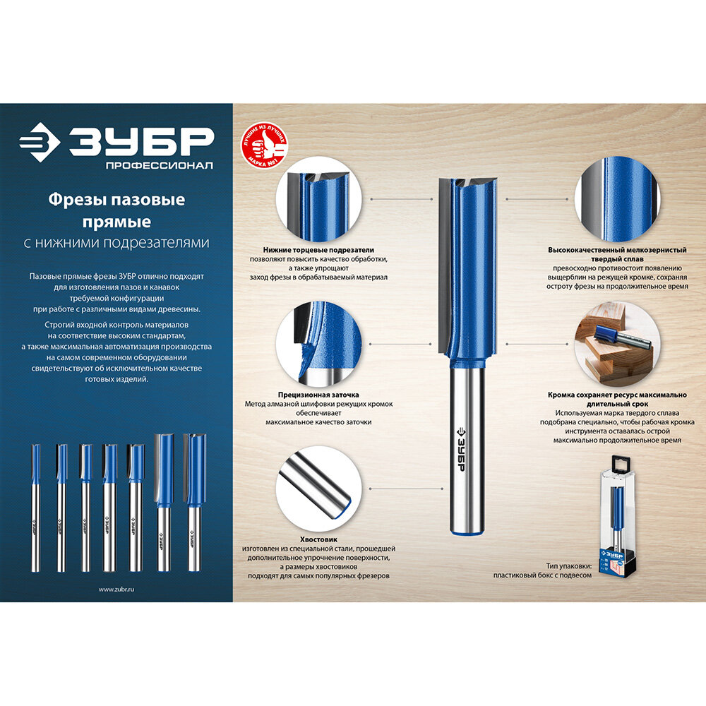 ЗУБР 12x30мм, хвостовик 8мм, фреза пазовая прямая с нижними подрезателями, , серия Профессионал (28755-12-30) интересное: