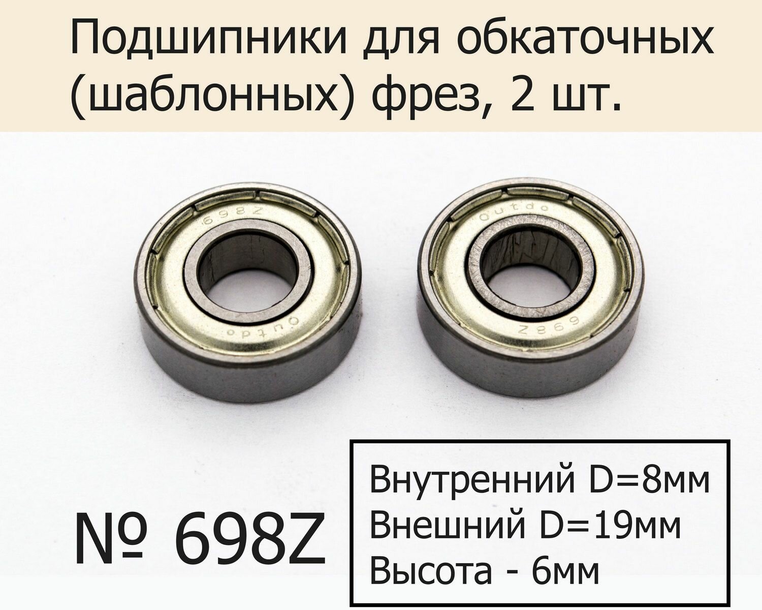 Подшипники №698z для обкаточных (шаблонных) фрез 8х19х6 мм, 2 шт. интересное: