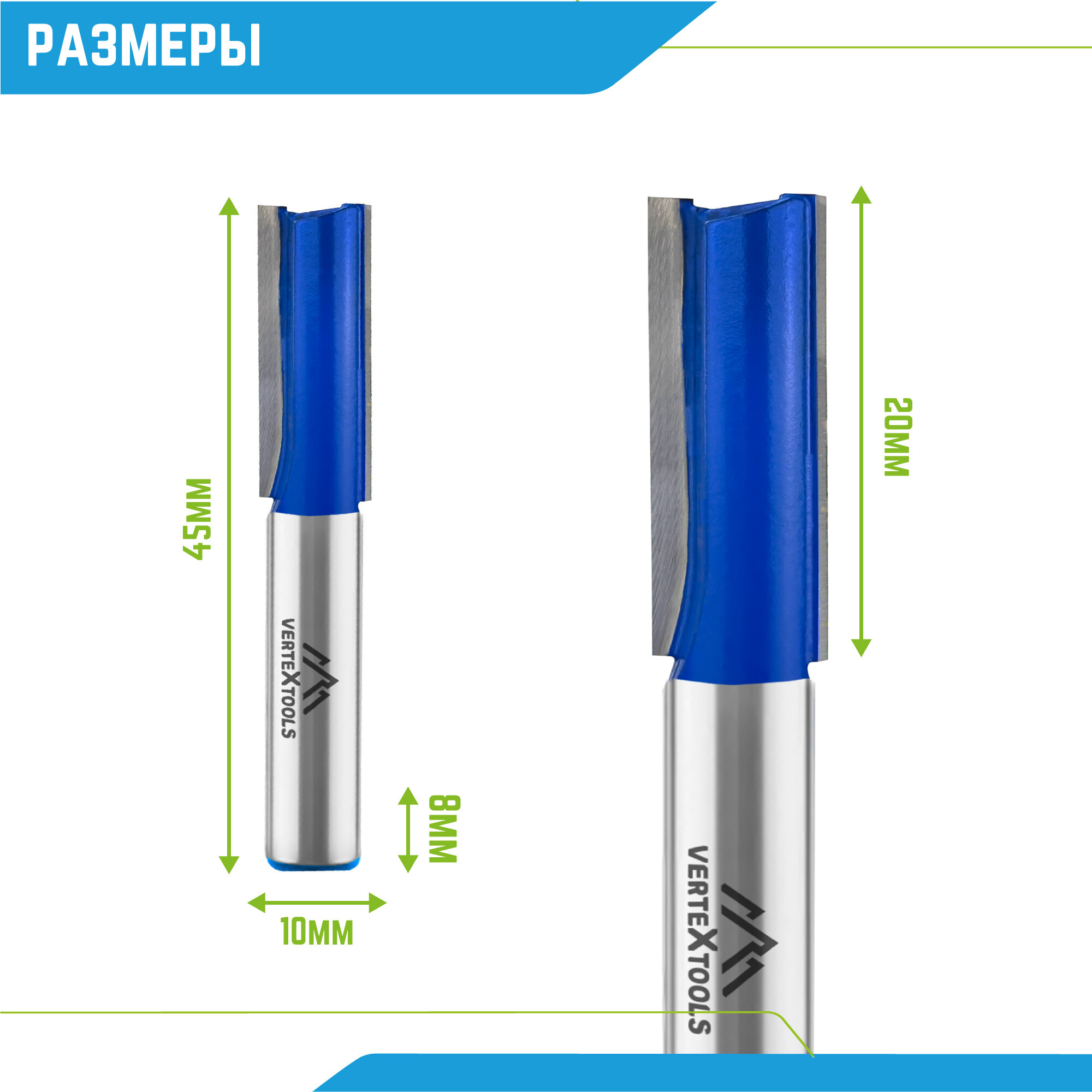 Купить Фреза пазовая прямая VertexTools с двойным лезвием Ø 10 мм. / 8 мм. хвостовик