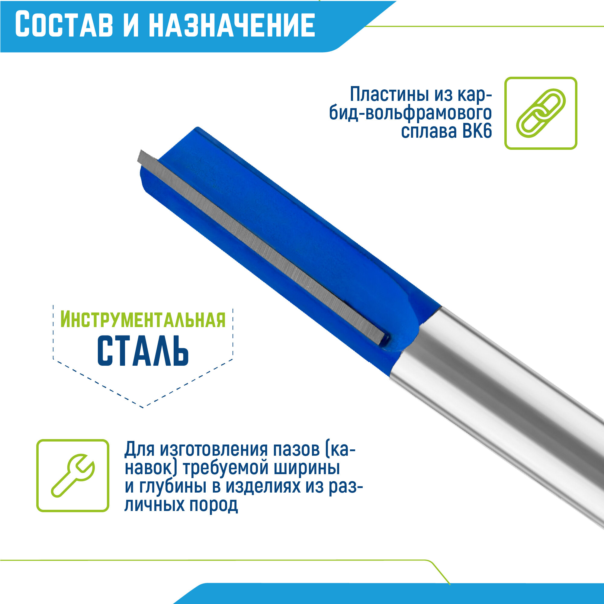 Фреза пазовая прямая VertexTools с двойным лезвием Ø 6 мм. / 8 мм. хвостовик