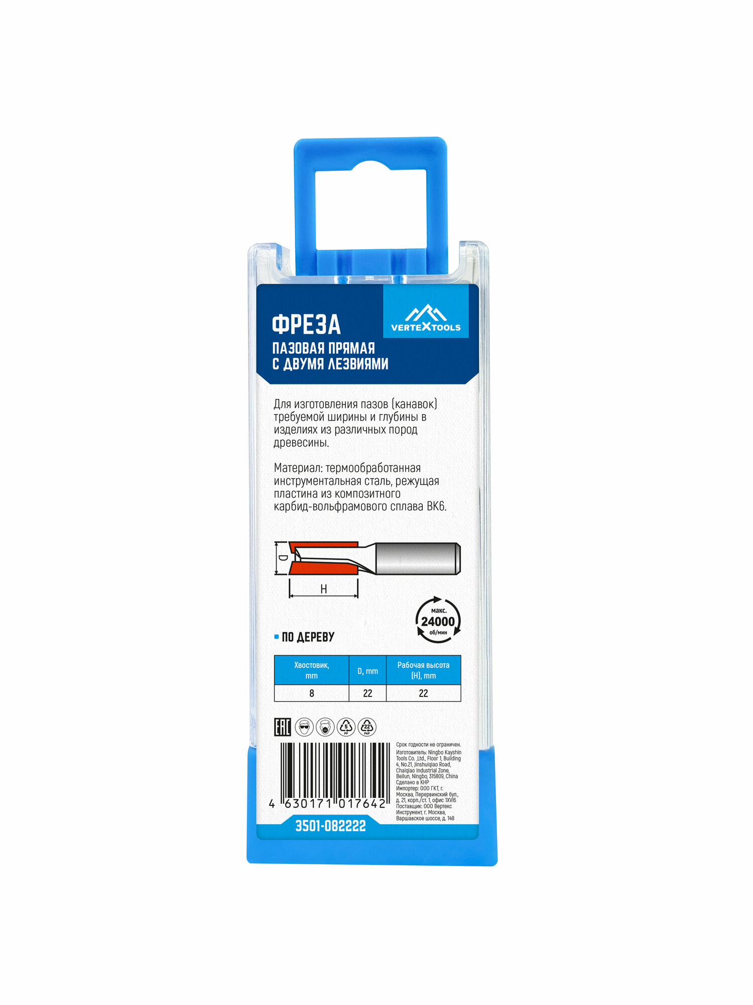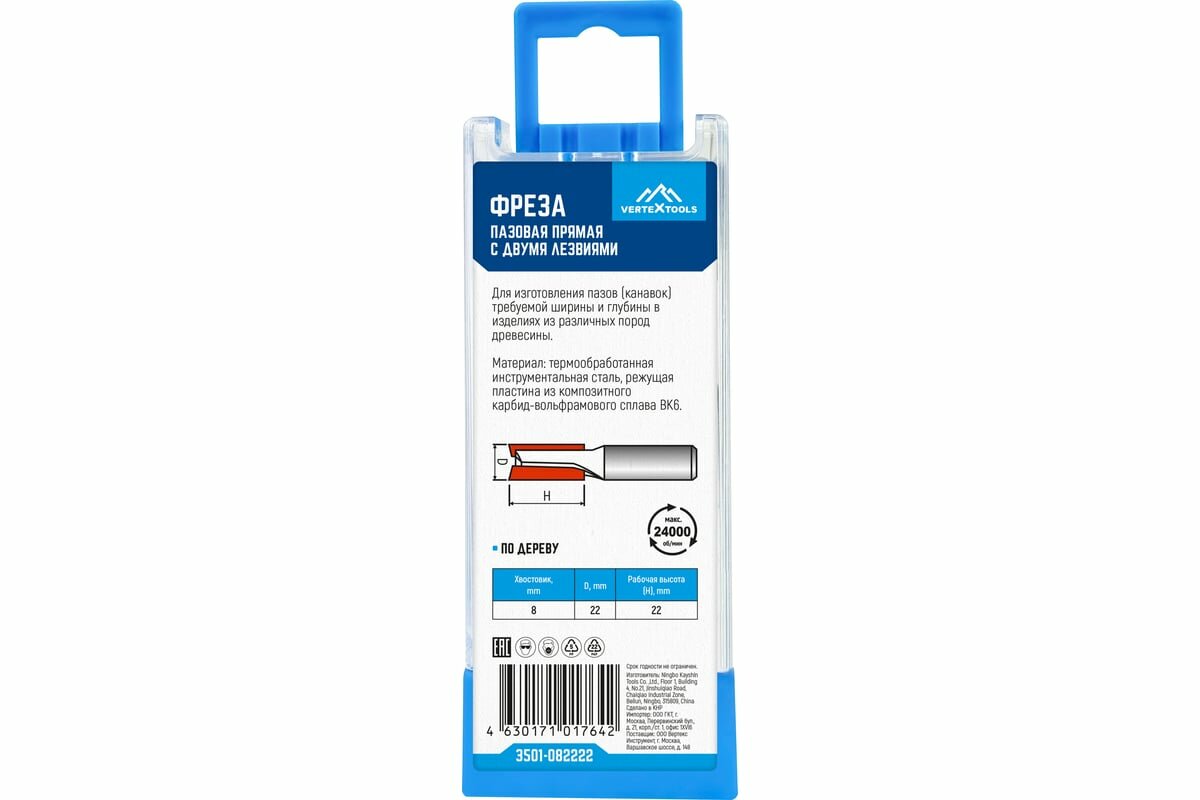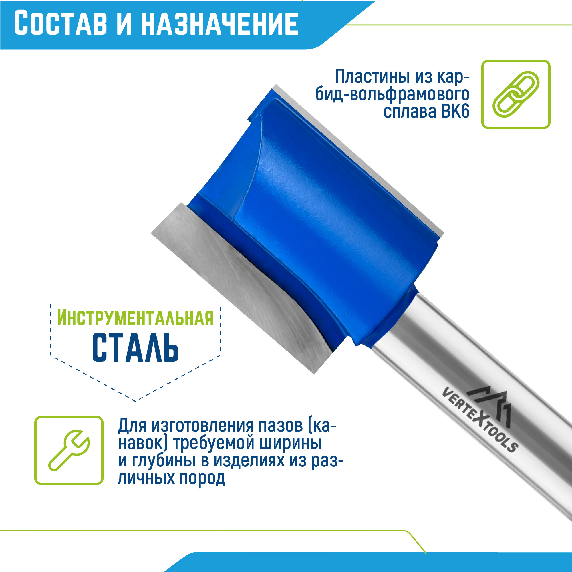 Купить Фреза пазовая прямая VertexTools с двойным лезвием Ø 22 мм. / 8 мм. хвостовик