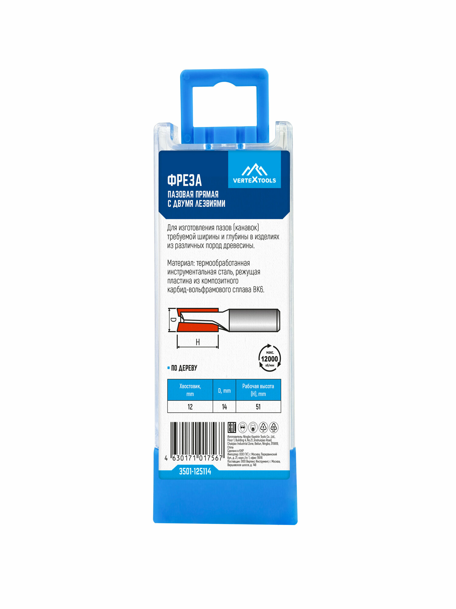 Купить Фреза пазовая прямая VertexTools с двойным лезвием Ø 14 мм. / 12 мм. хвостовик