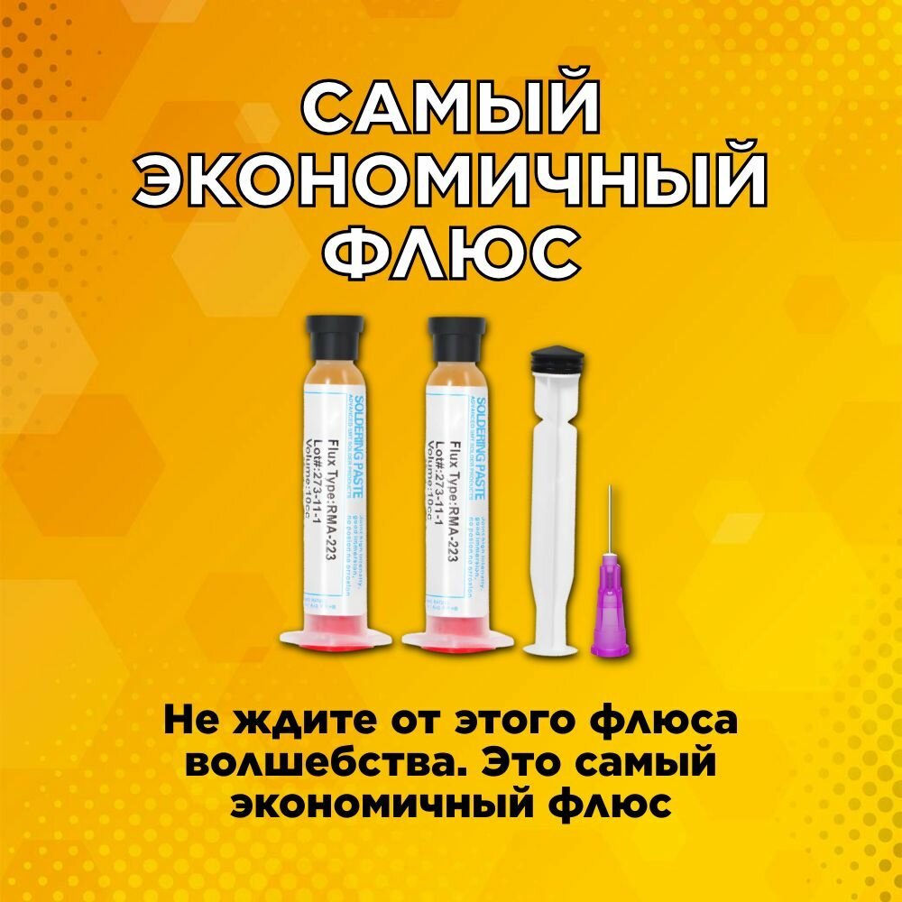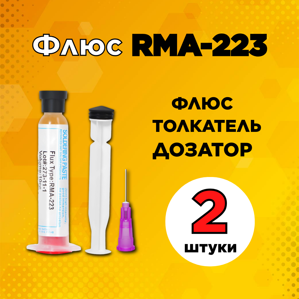 Купить Флюс гель, универсальный, для пайки микросхем и компонентов RMA-223, 10г. Дозатор и толкатель в комплекте. 2 штуки