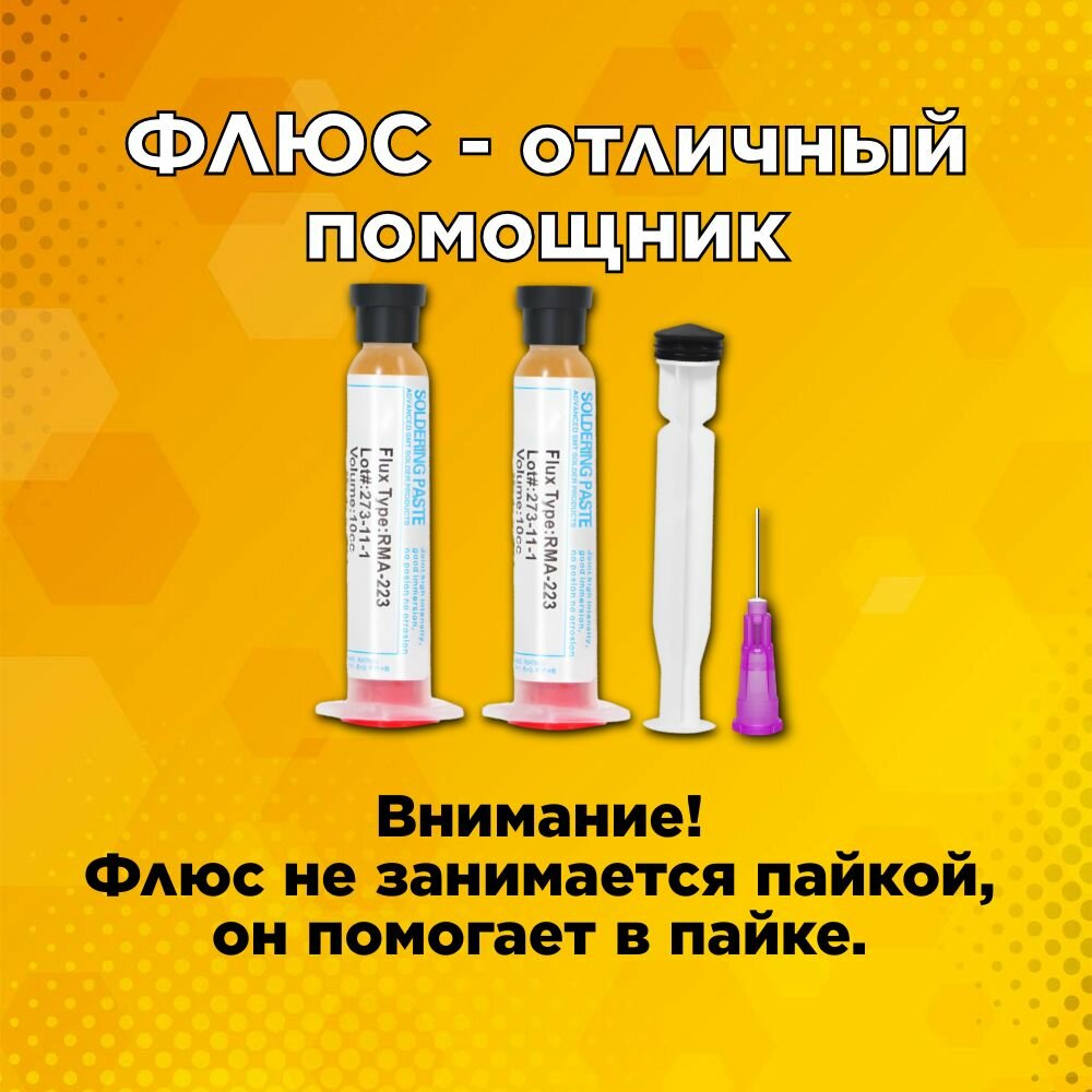 СохранитьФлюс гель, универсальный, для пайки микросхем и компонентов RMA-223, 10г. Дозатор и толкатель в комплекте. 2 штуки интересное: