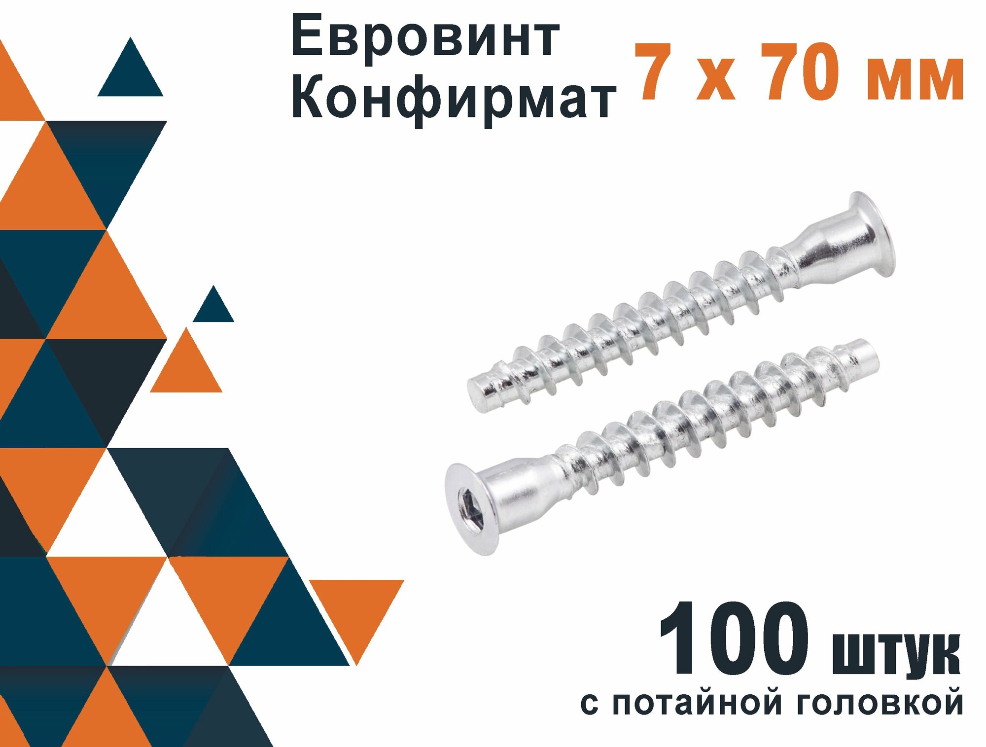 Конфирмат, Мебельный винт 7х70 мм, 100 шт , Евровинт для мебельной стяжки с потайной головкой под шестигранник интересное: