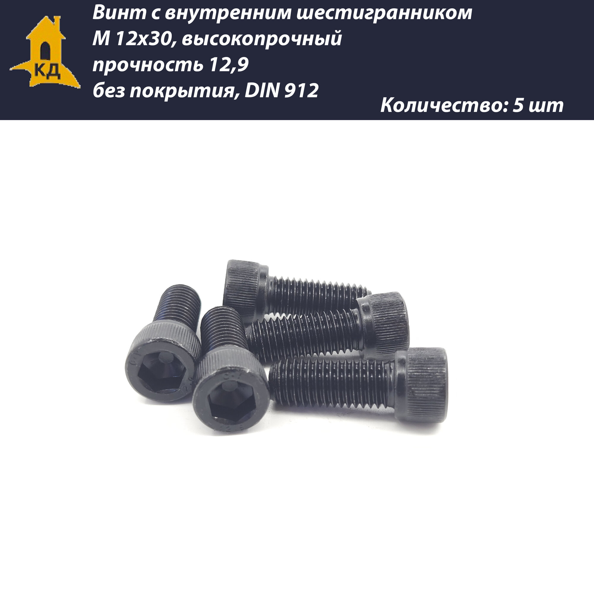 Винт с внутренним шестигранником М 12х30, высокопрочный, прочность 12,9, без покрытия, DIN 912, 5 шт. интересное: