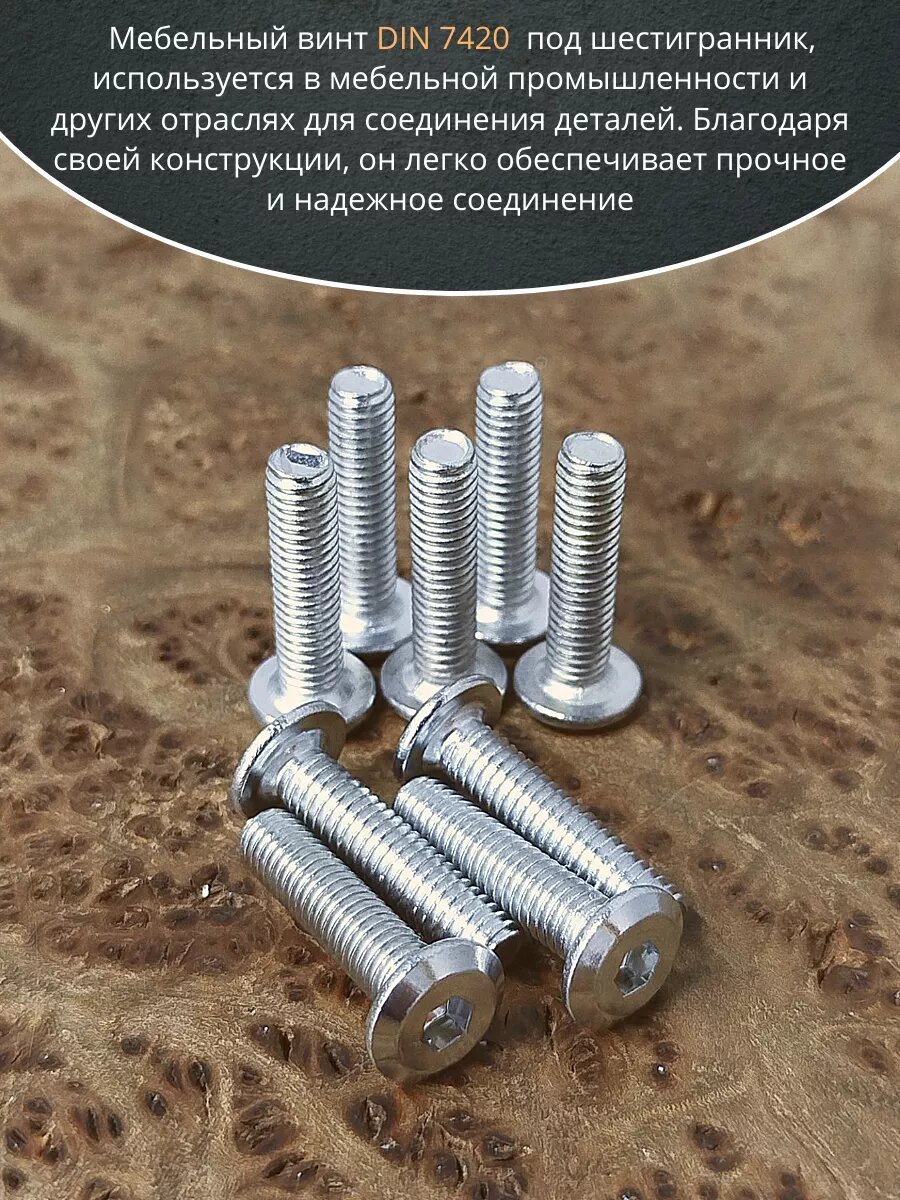 СохранитьВинт мебельный 6х30 плоский под шестигранник DIN7420,20 шт интересное: