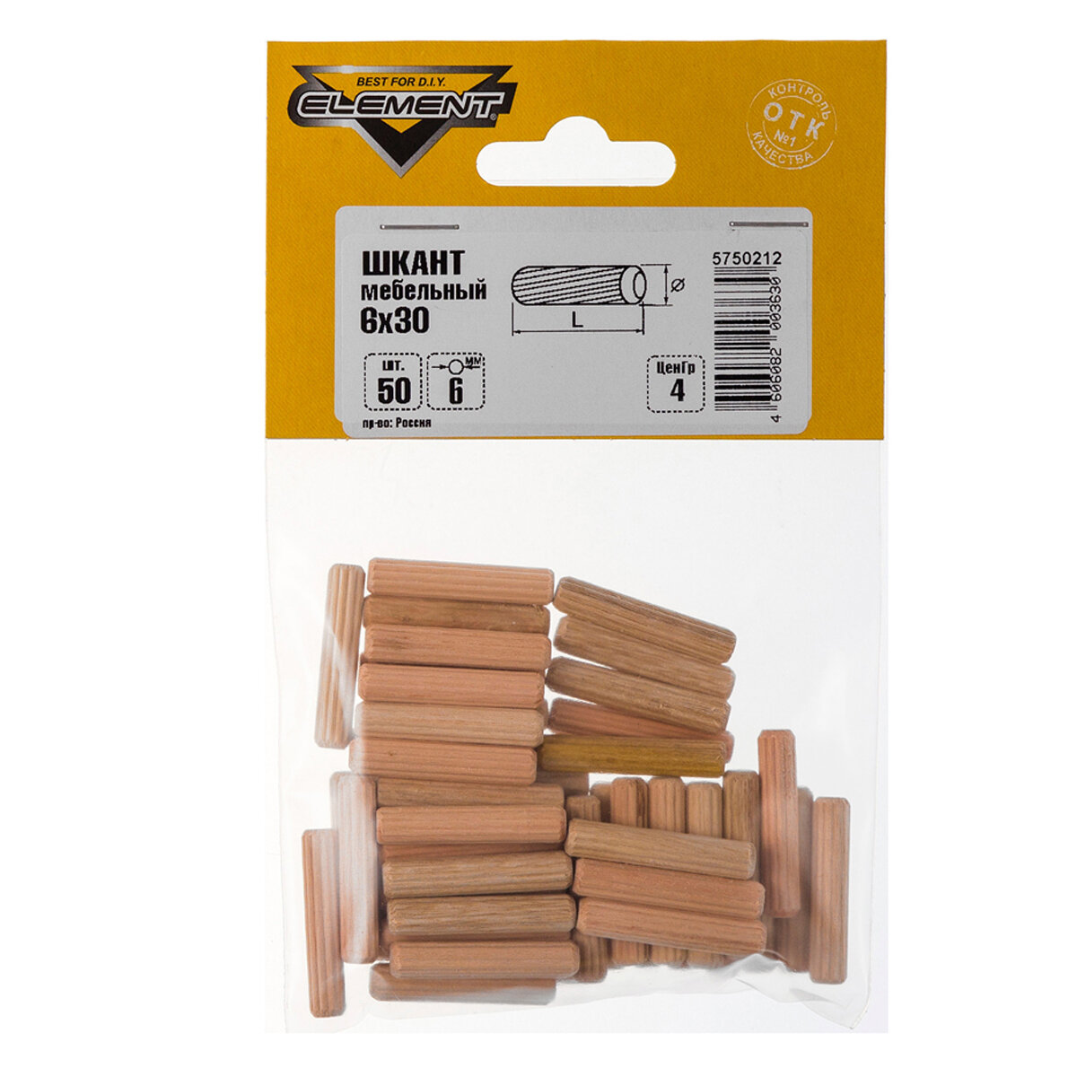 Купить Шкант мебельный Element, 6х30 мм, 50 шт.