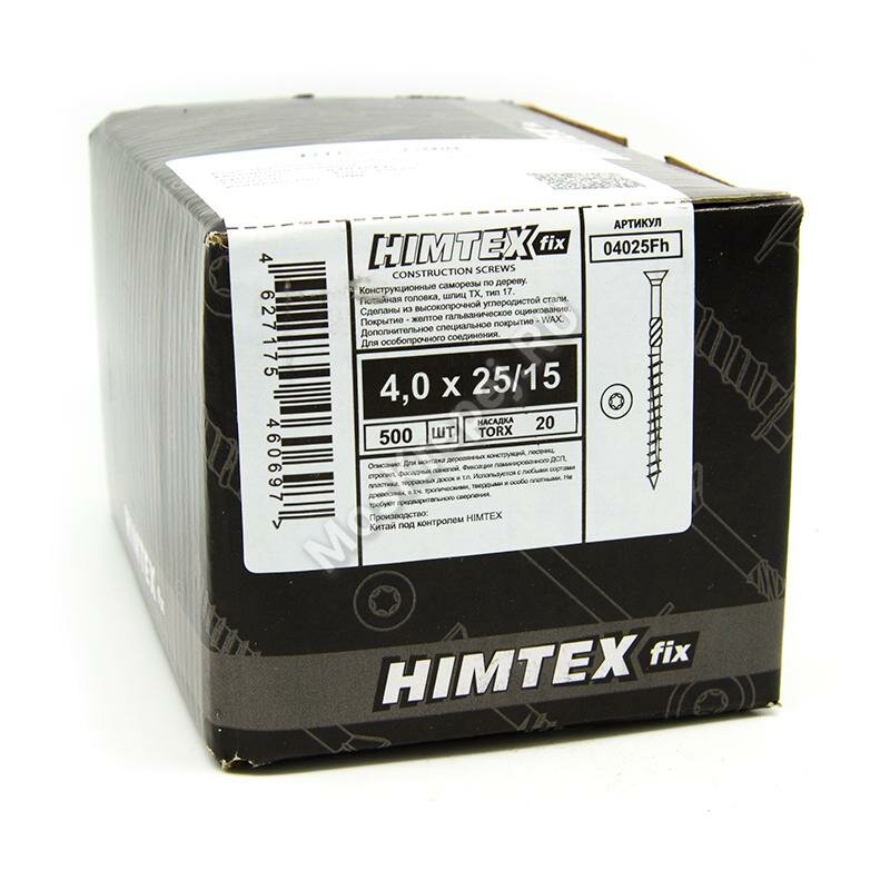 Саморез HIMTEXfix конструкционный отделочный по дереву, с потайной головкой 4,0*25/15 мм, TORX 20, сталь, 500 шт.