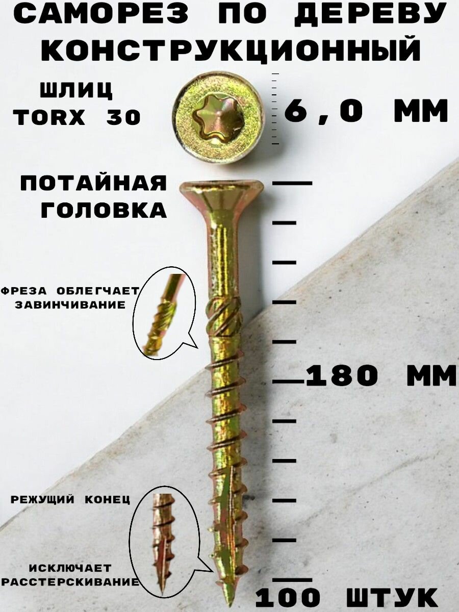 Саморез конструкционный по дереву 6*180 HIMTEX потайной