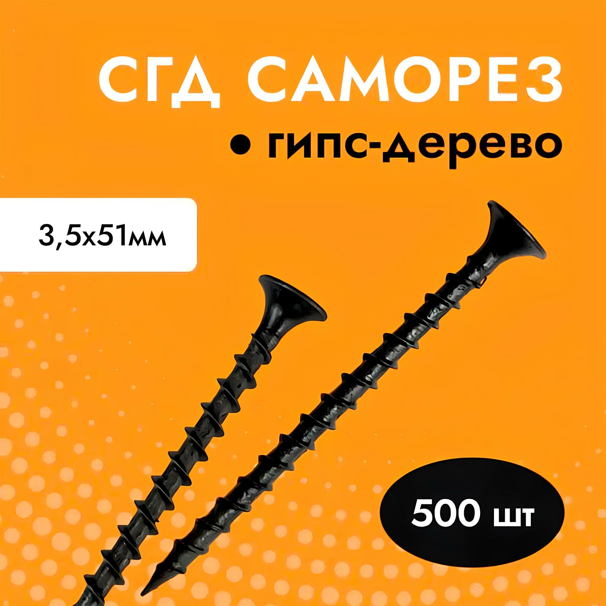 СохранитьСаморез СГД 3,5х51 мм (упаковка 500 шт.) черный по дереву для гипсокартона (ГКЛ), шуруп в дюбель пластик. интересное: