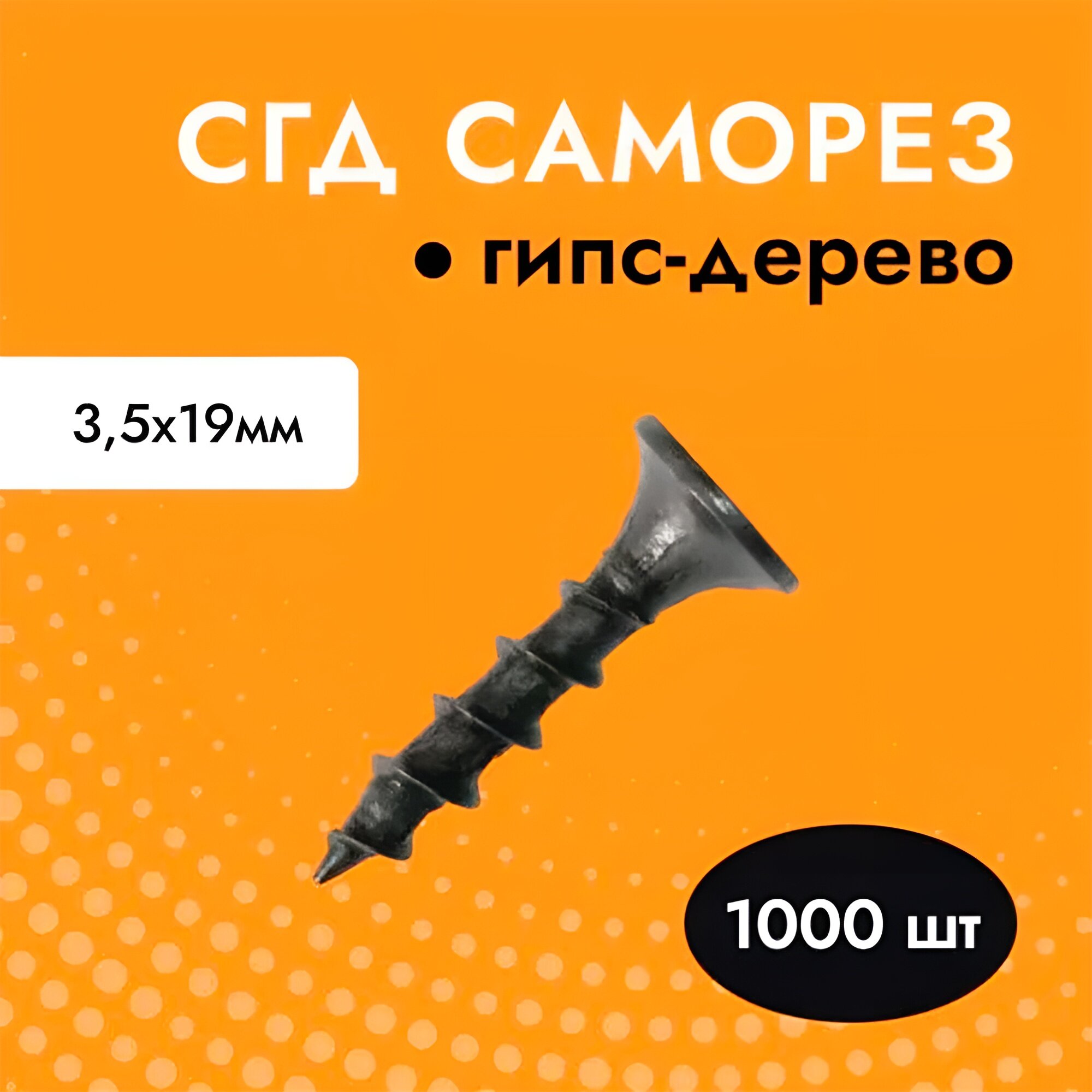 СохранитьСаморез СГД 3,5х19 мм (упаковка 1000 шт.) черный по дереву для гипсокартона (ГКЛ), шуруп в дюбель пластик. интересное: