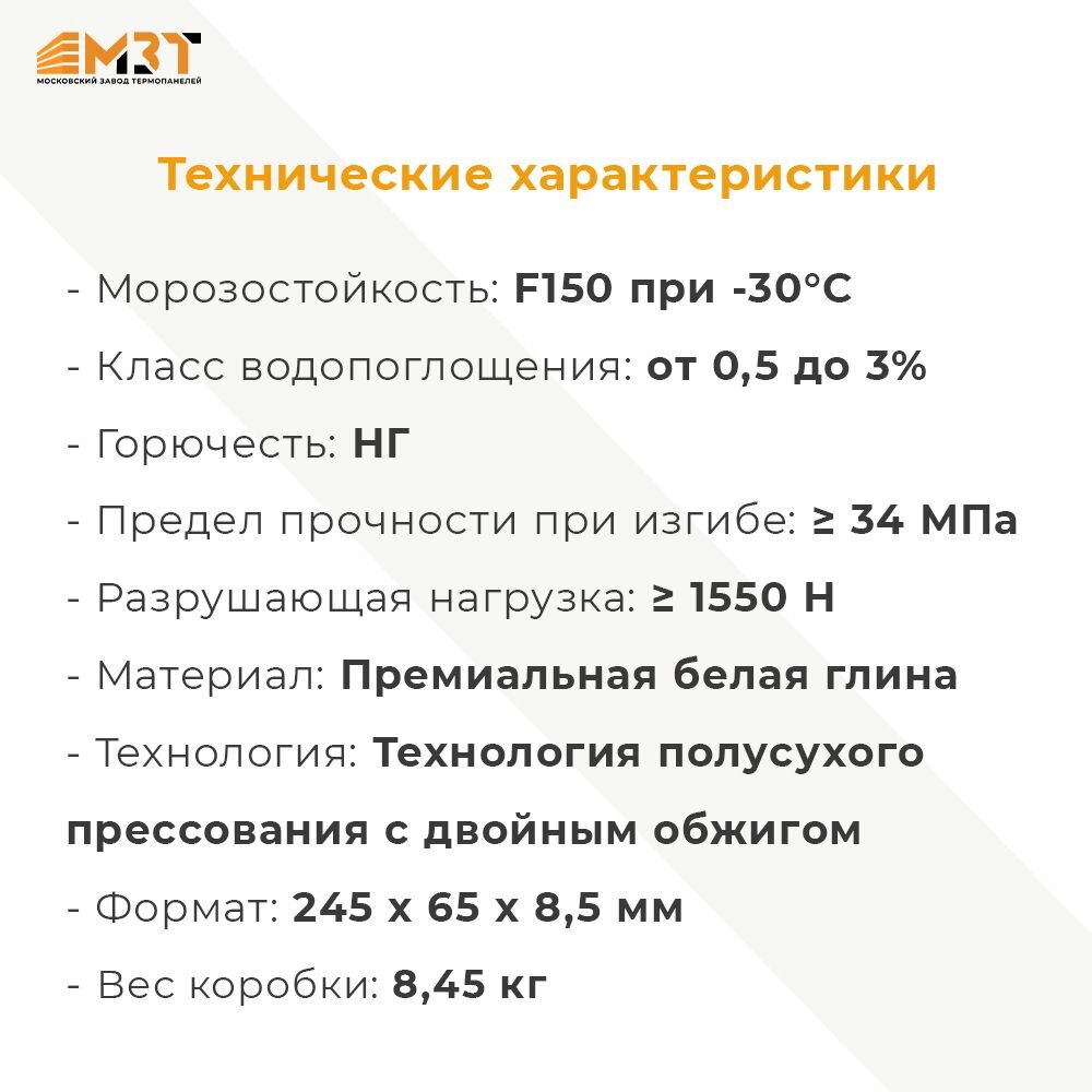 Клинкерная плитка МЗТ, 32 шт., 0.5 кв. м., облицовочная, декоративная, для интерьеров и фасадов, белая глина двойного обжига интересное: