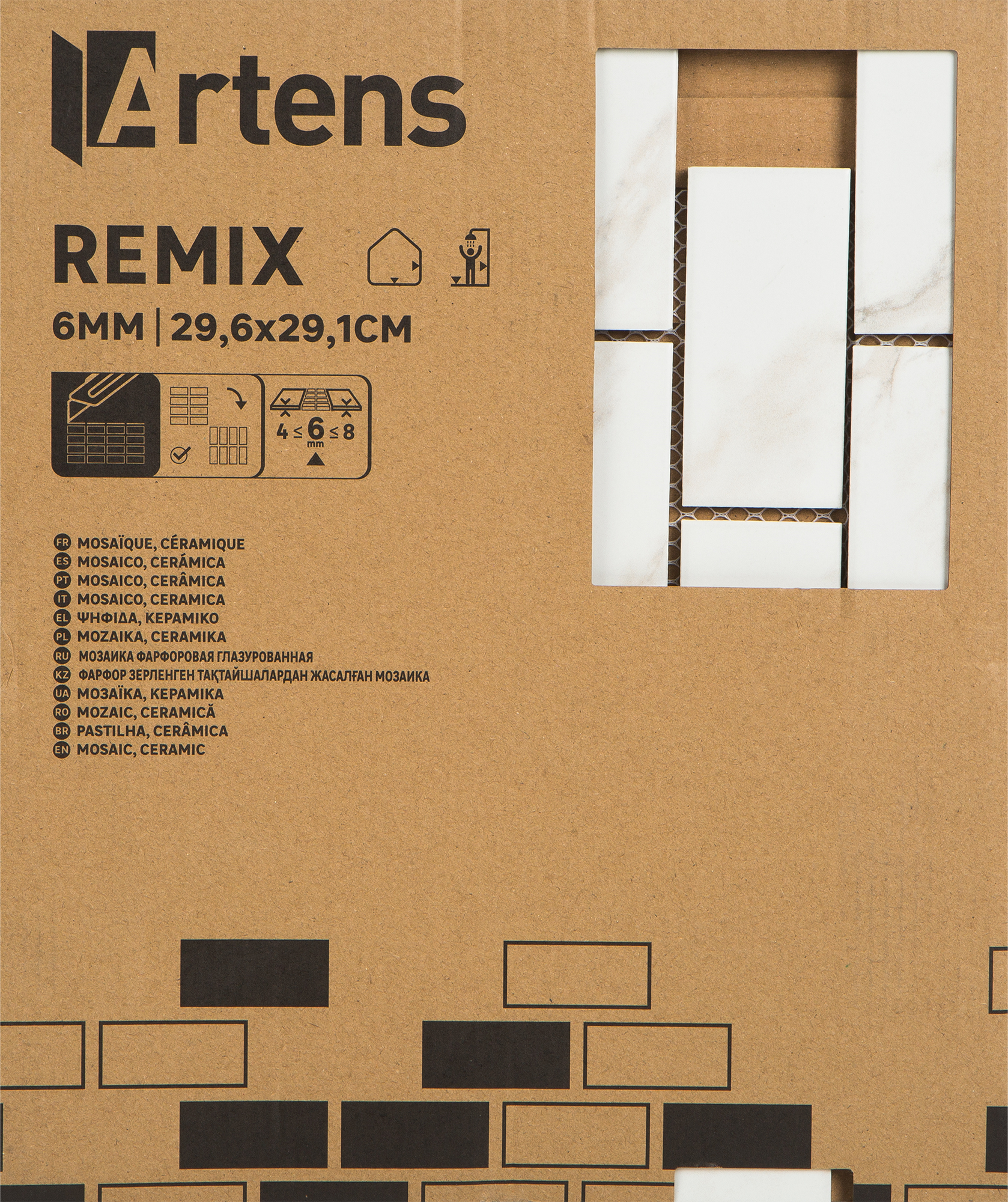 | Дополнительная информация | Мозаика фарфоровая Artens Remix 29.6х29.1 см цвет белый/серый |