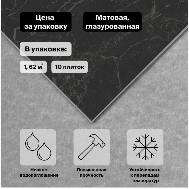 | Дополнительная информация | тон (оттенок) плитки может отличаться от партии к партии; каждая новая партия плитки имеет оттенок, отличающийся от оттенка предыдущей партии в силу особенностей производственного процесса плитки; отличие тона плитки разных партий не является производственным браком продукции |