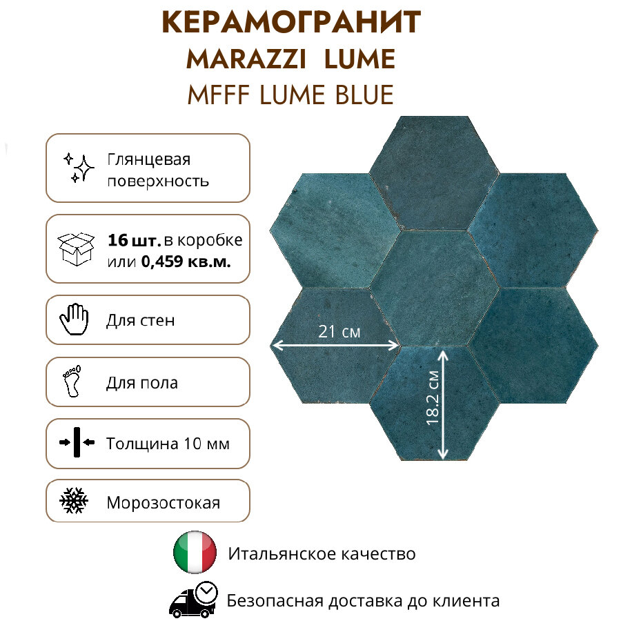 Керамогранит MARAZZI LUME Lume Blue lux esagona MFFF, 12x18.2 см, синий глянцевый интересное: